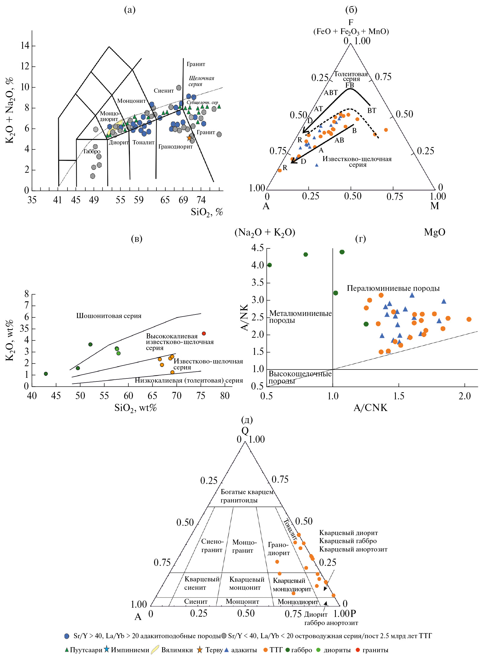 - Martin H., Smithies R.H., Rapp R., Moyen J.-F., Champion D. An overview of adakite, tonalite–trondhjemite–granodiorite (TTG), and sanukitoid: relationships and some implications for crustal evolution // Lithos. 2005. V. 79. P. 1–24. doi: 10.1016/j.lithos.2004.04.048