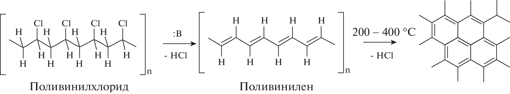 The possibility of synthesizing carbon–carbon nanocomposites with nanofibers embedded in a carbon matrix by two-stage dehydrochlorination (under the action of alkali followed by carbonization) of a carbon-chain chloropolymer has been shown. Chlorinated polyvinyl chloride was used as the initial chloropolymer, and nitrogen-containing carbon nanofibers (N-CNFs) were used as a nanoscale component. The structure of the resulting nanocomposites was examined by electron microscopy and the texture parameters were studied using low-temperature nitrogen adsorption–desorption. The introduction of N-CNFs into the carbon matrix and the activation of the resulting carbon–carbon nanocomposite in an atmosphere of CO2 contributed to the formation of a micro- and mesoporous material with a specific surface area of ~1100 m2/g. It was shown that the resulting nanocomposites were characterized by high energy capacity and energy efficiency when tested as electrodes of electrochemical supercapacitors.