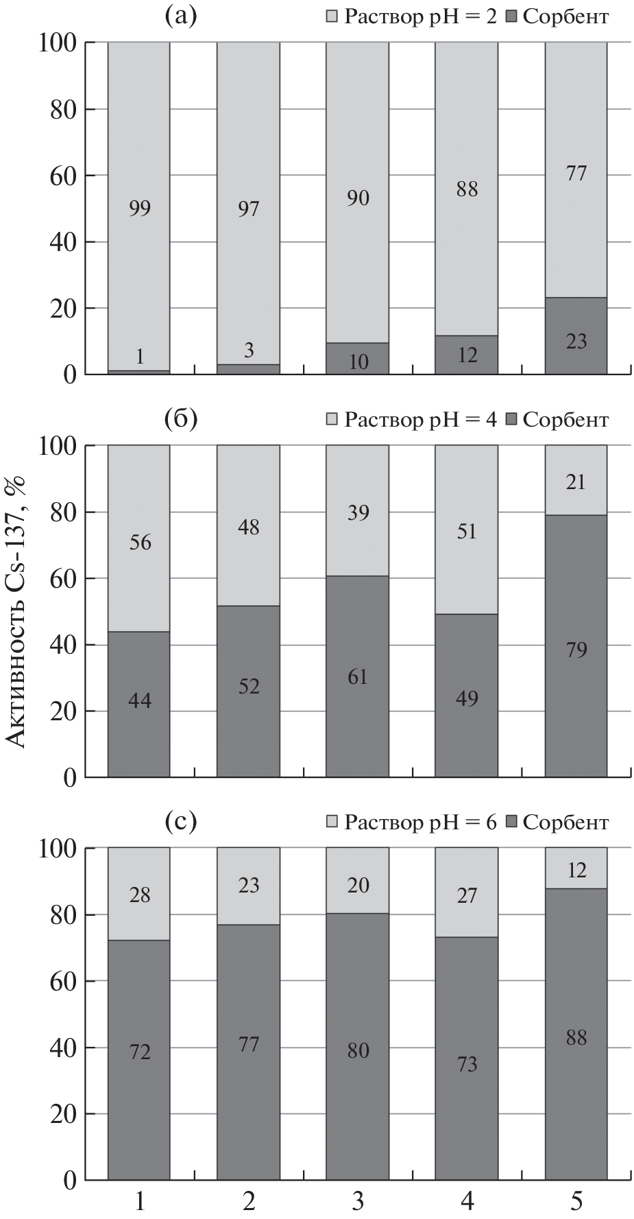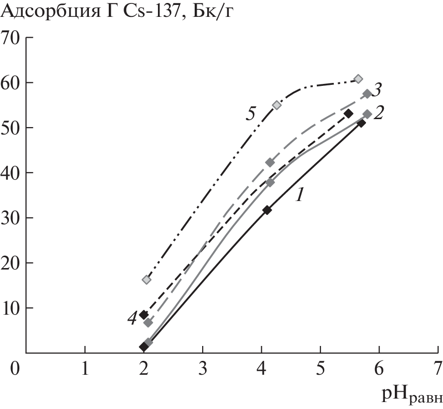 the pH of the medium and the nature of a sorbent are the key factors determining the efficiency of Cs-137 sorption. It was established that the values of the limiting sorption of Cs-137 for peat and products based on it increased with pH