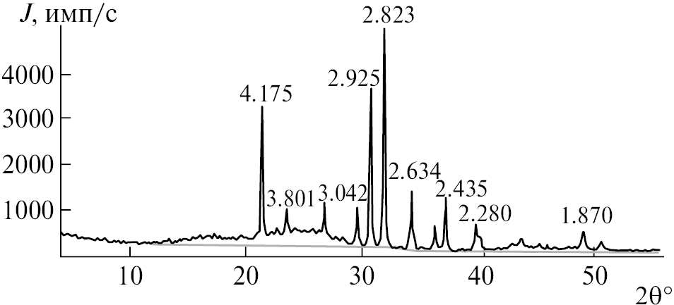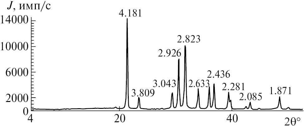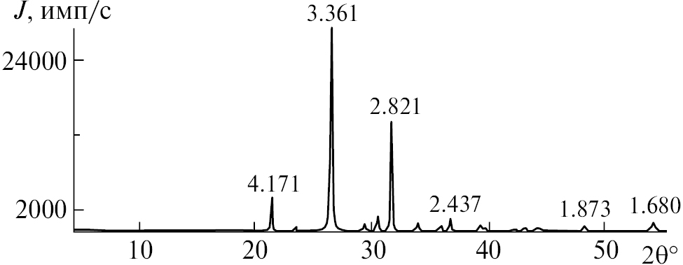 Рис. 3. Порошковая рентгеновская дифрактограмма карбоната лития.