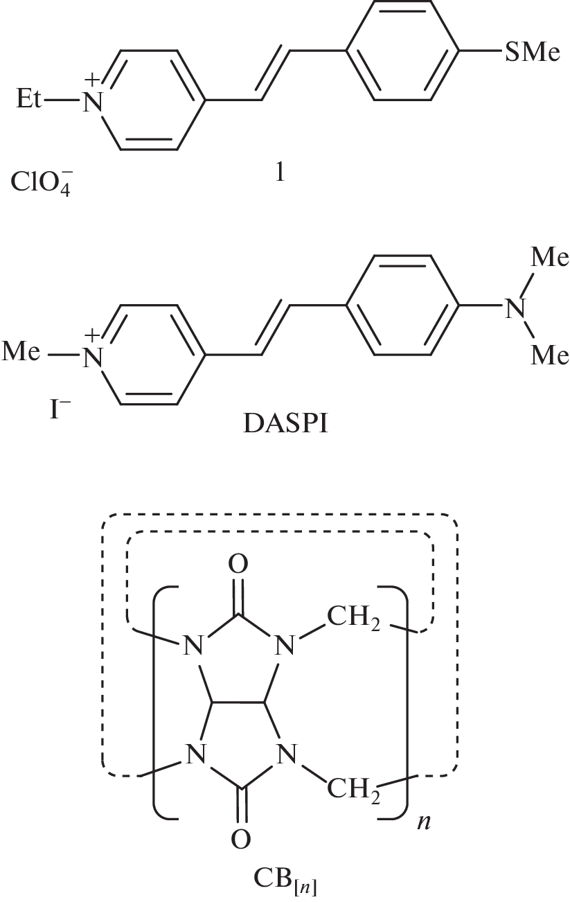 Photoprocesses in aqueous solutions of the styryl dye 1-ethyl-4-{(E)-2-[4(methylthio)phenyl]vinyl}pyridinium perchlorate (1) and its complexes with cucurbit[n]urils (CB[n], n = 6–8) have been studied using the methods of stationary and time-resolved optical spectroscopy. The fluorescence intensity increases by approximately 3 times in 1 : 1 complexes of 1 and CB[6], whereas CB[7] has almost no effect on the fluorescence intensity. In 2 : 1 complexes with CB[8], the photocycloaddition reaction does not occur, with strong fluorescence quenching being associated with the formation of nonreactive dimers. The fluorescence decay kinetics of 1 has two characteristic times, 1.4 and ~130 ps, and changes little in the complexes. The photoinduced intramolecular charge transfer in 1 is an order of magnitude smaller than in the wellknown dye DASPI.