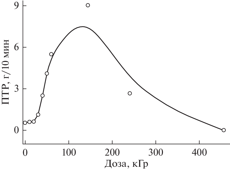polypropylene (PP) has been studied as a function of the absorbed dose. It has been established that γ-irradiation leads to an increase in the free surface energy of the polymer, its acid–base component, and the surface polarity. An analysis of the IR spectra of γ-irradiated PP samples indicated the formation of oxygen-containing groups in the composition of PP macromolecules, which was confirmed by the values of the surface acidity parameter. An increase in the dose led to an increase in the concentration of products of radiation-induced conversion. A significant increase in the melt flow index (MFI) of polypropylene up to an absorbed dose of 150 kGy also evidenced the occurrence of oxidation and destruction processes. The MFI decreased at radiation doses above 150 kGy, and this fact indicates that such doses of ionizing radiation lead to the predominance of the processes of polymer structuring or crosslinking.