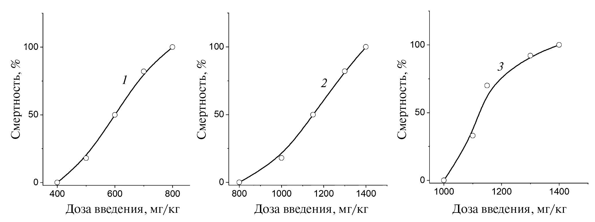 Опыты по определению острой токсичности проводились в соответствии с Руководством по проведению доклинических исследований лекарственных средств [10] и с соблюдением принципов гуманного обращения с животными в соответствии с национальными и международными стандартами.