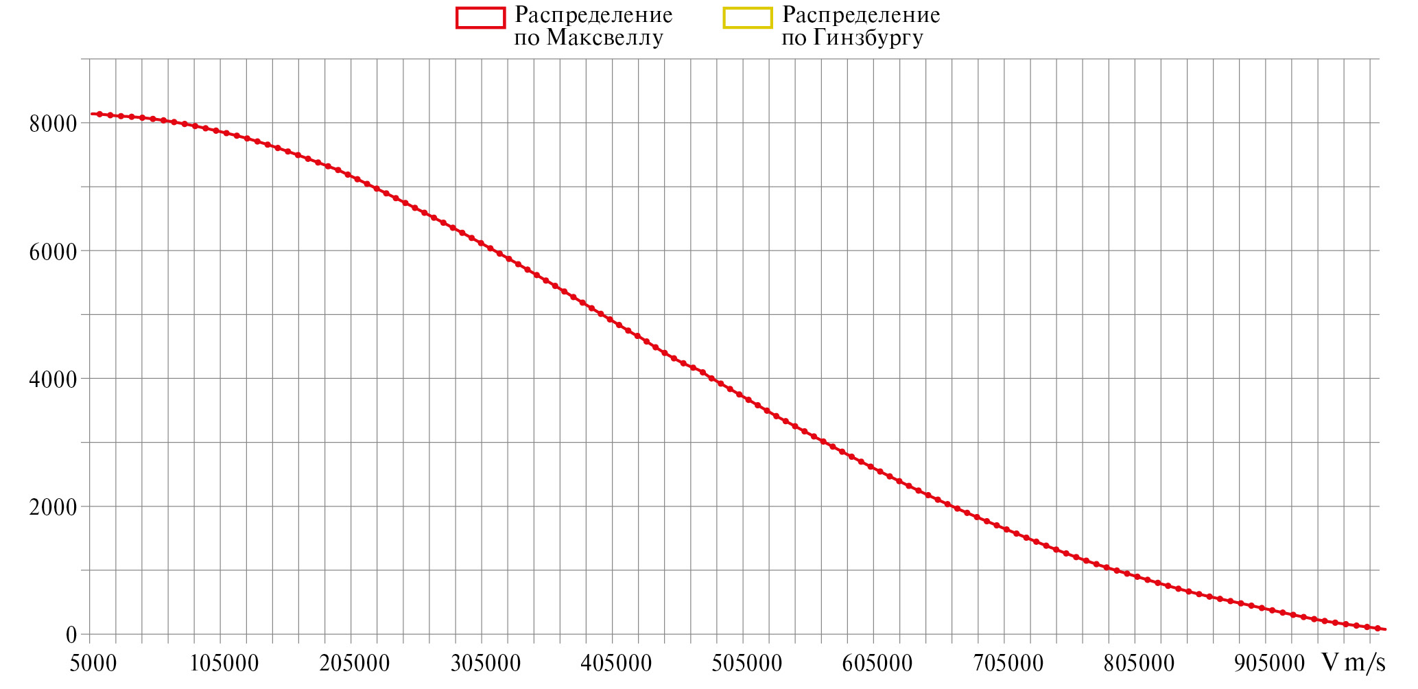 Рис. 4. Функция распределения электронов по скоростям в относительных единицах при nc = 109 Гц и f = 13.56 МГц.