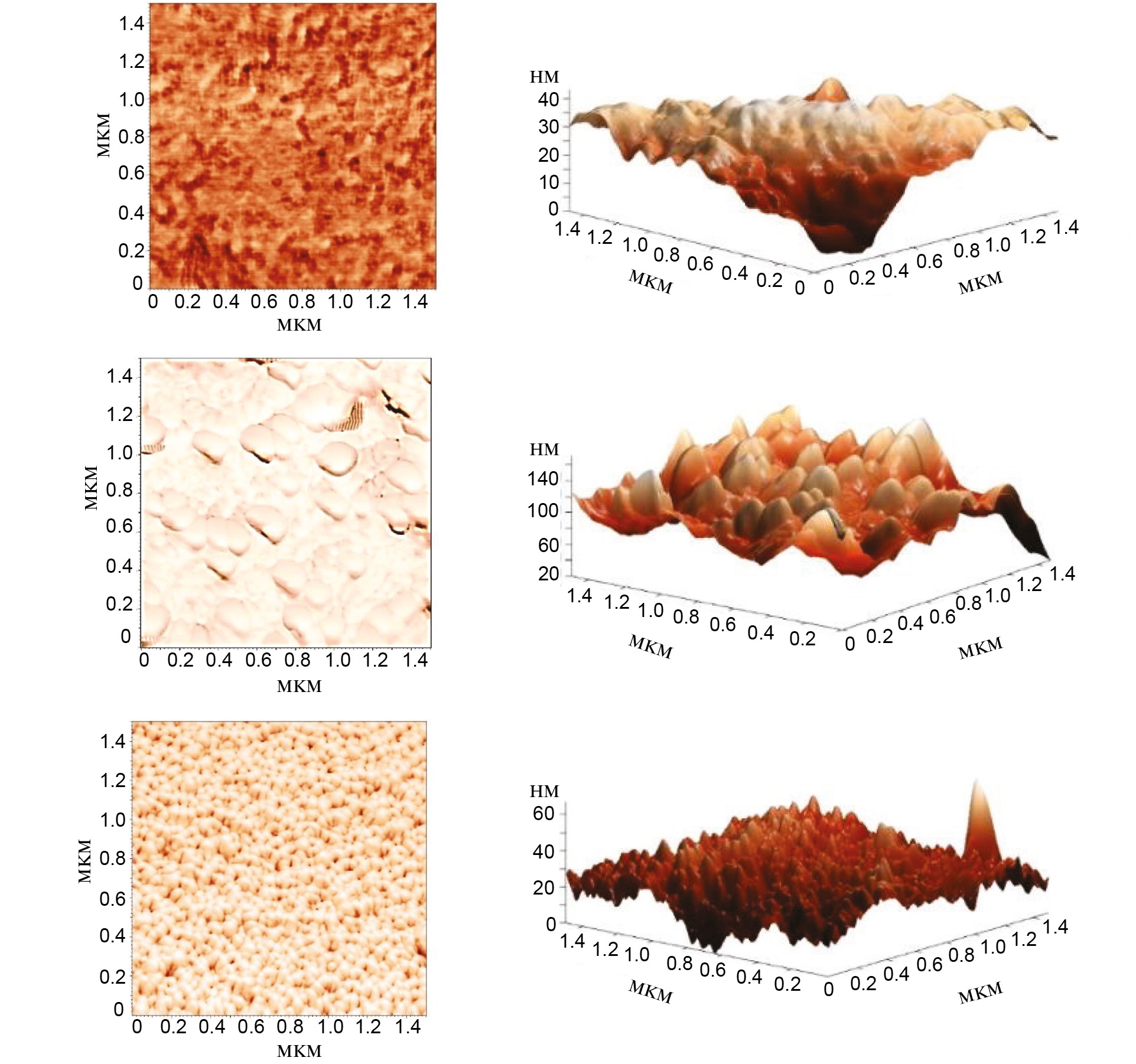 Топологию поверхности исследовали методом атомно-силовой микроскопии на приборе SOLVER P47-PRO в полуконтактном режиме. Статистическая обработка полученных изображений проводилась в программе Nova (NT-MDT, Россия).
