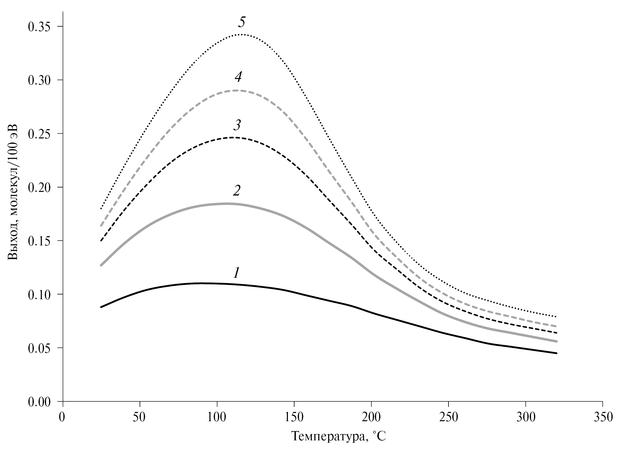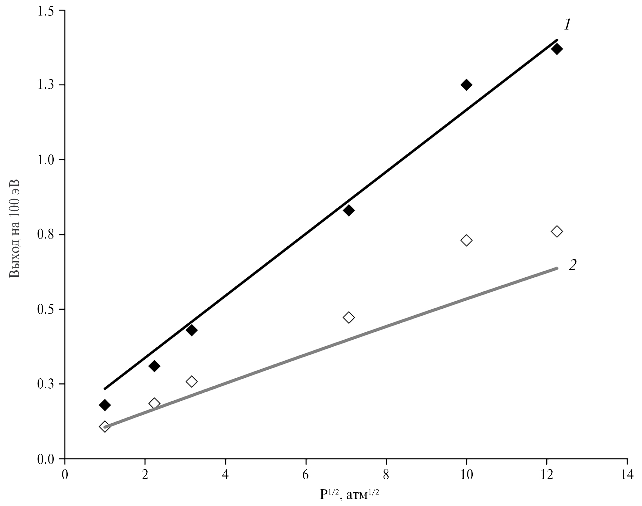 Путем постулирования “эффективного” начального радиационно-химического выхода процесса (2), равного 45 молекулам/100 эВ, авторам [4] удалось добиться приемлемого согласия расчетных и экспериментальных результатов.