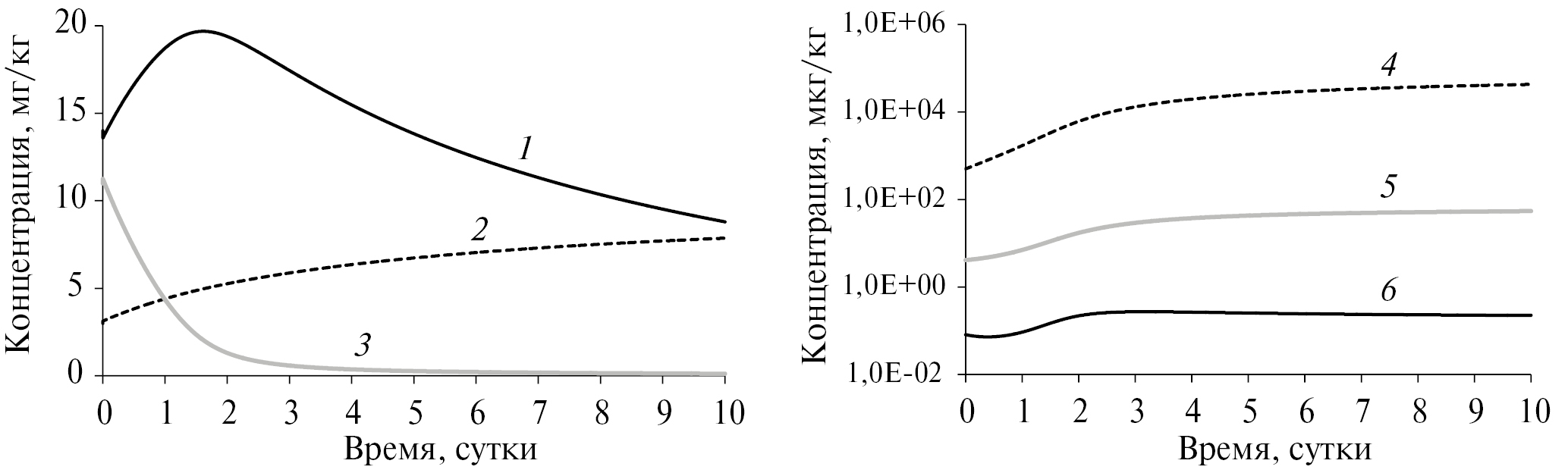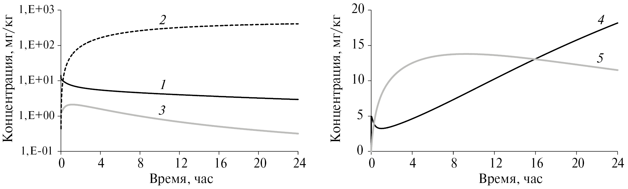 Численное решение жесткой системы нелинейных дифференциальных уравнений (6) в настоящей работе осуществляли методом формул дифференцирования назад.