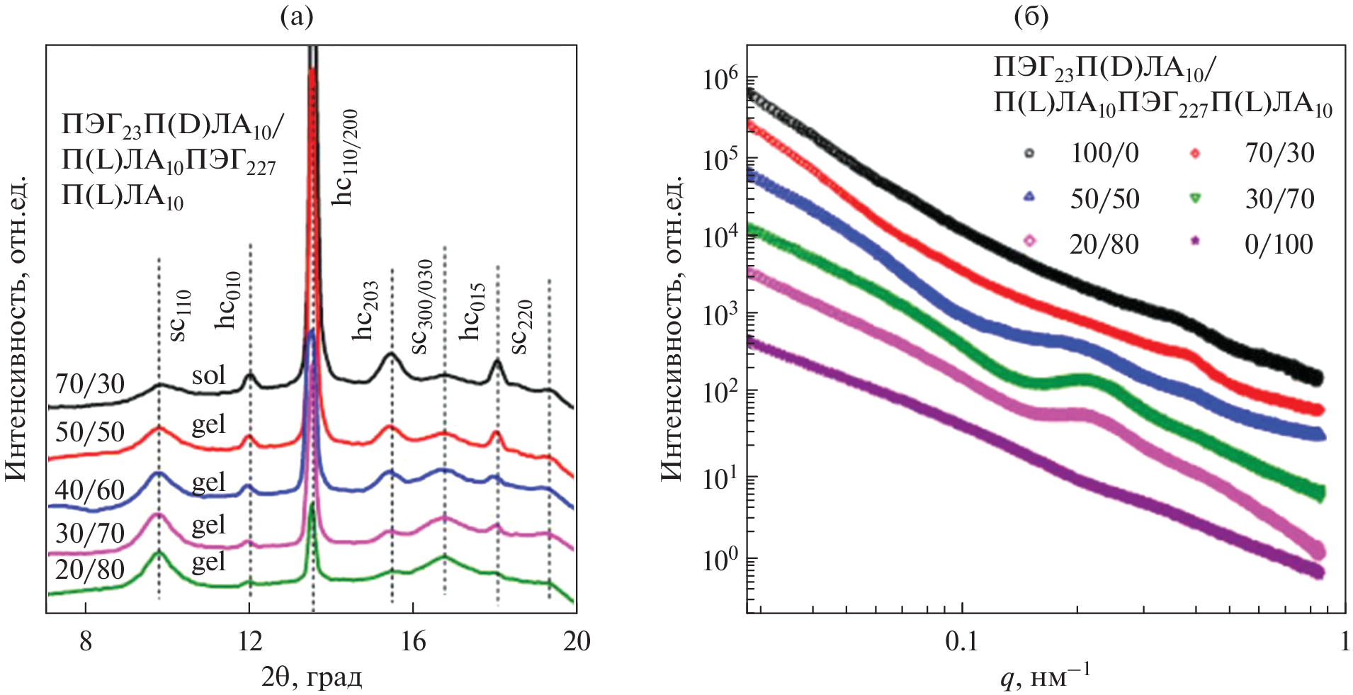 - Mao H., Pan P. et al. In situ formation and gelation mechanism of thermoresponsive stereocomplexed hydrogels upon mixing diblock and triblock poly(lactic acid)/poly(ethylene glycol) copolymers // The Journal of Physical Chemistry. 2015. V. 119. № 21. P. 6471–6480. https://doi.org/10.1021/acs.jpcb.5b03610