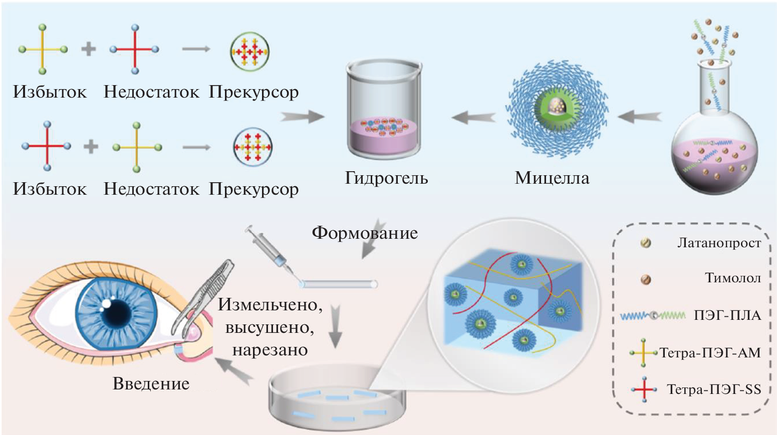 - Zhao J., Xiong J. et al. A triple crosslinked micelle-hydrogel lacrimal implant for localized and prolonged therapy of glaucoma // European Journal of Pharmaceutics and Biopharmaceutics. 2023. V. 185. P. 44–54. https://doi.org/10.1016/j.ejpb.2023.02.011