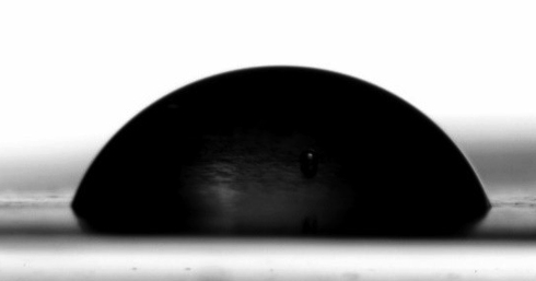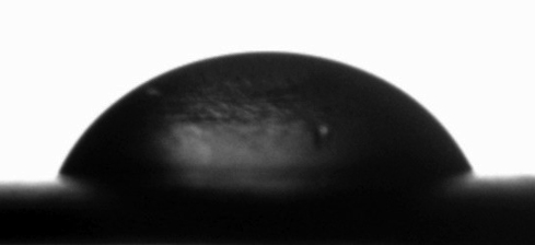 Краевые углы смачивания образцов бидистиллированной водой определяли методом статической посаженой капли на приборе, оснащенном 6-кратным монокулярным объективом и видеокамерой. Контактный угол определяли как наклон касательной к капле из точки касания трех фаз. Аппроксимацию формы капли проводили методом Лапласа–Юнга (по контуру всей капли).