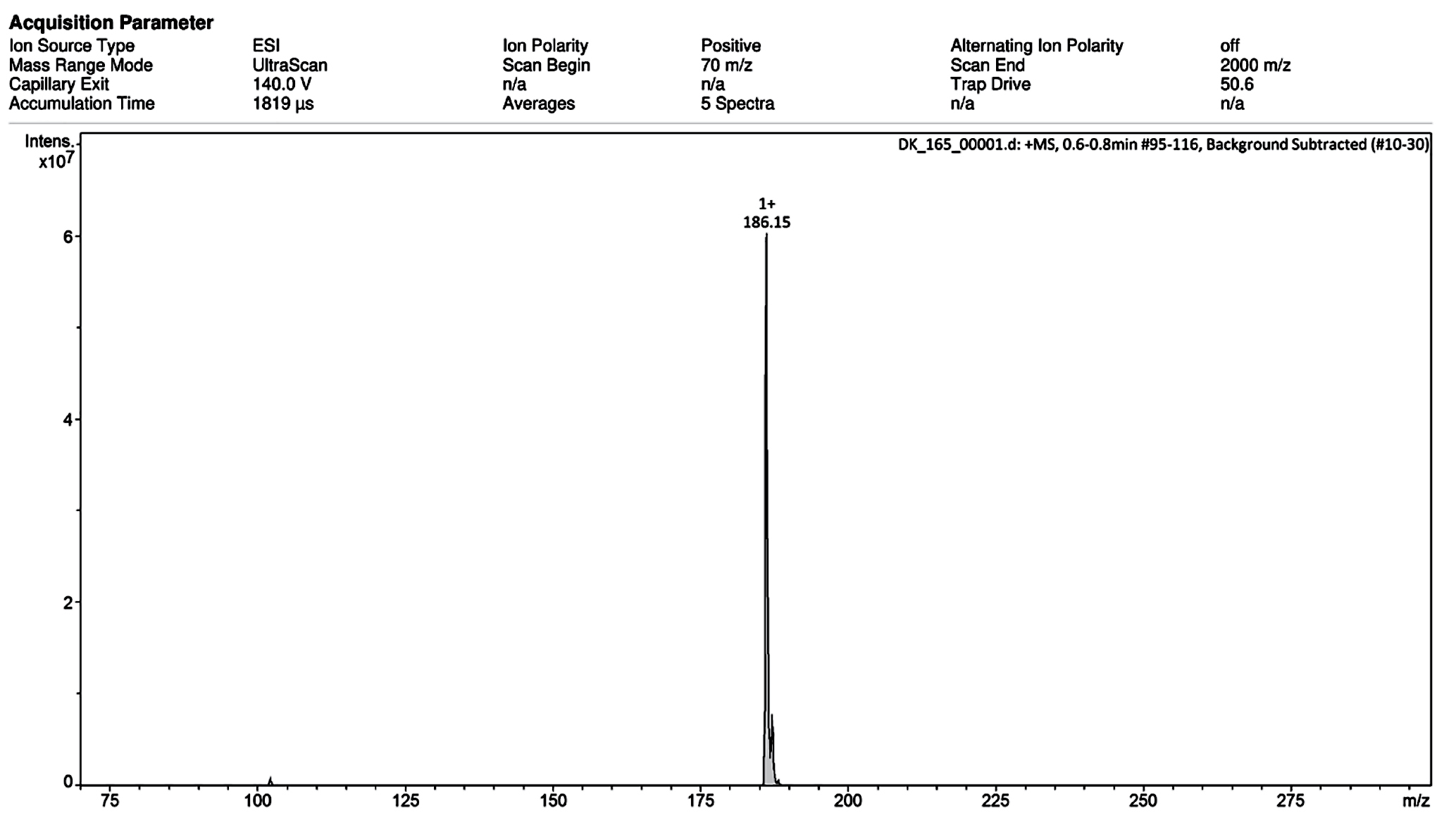 Рис. П6. Масс-спектр ИЭР соединения Мор-6(ДС) (регистрация положительных ионов).