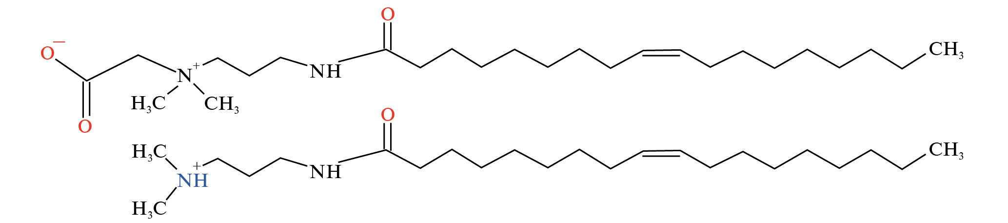 Рис. 1. Схематическое изображение структуры цвиттерионного ПАВ ОАПБ и положительно заряженного со-ПАВ ОАПА.