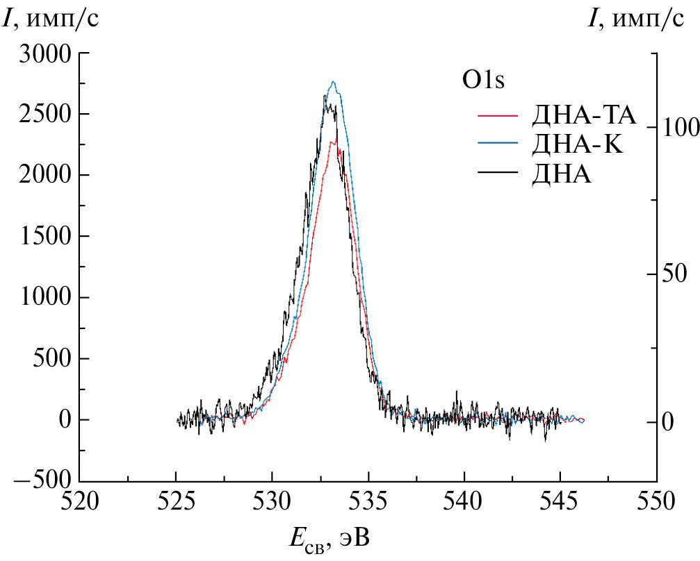 Рис. 7. Рентгеновские фотоэлектронные спектры O1s порошков ДНА.