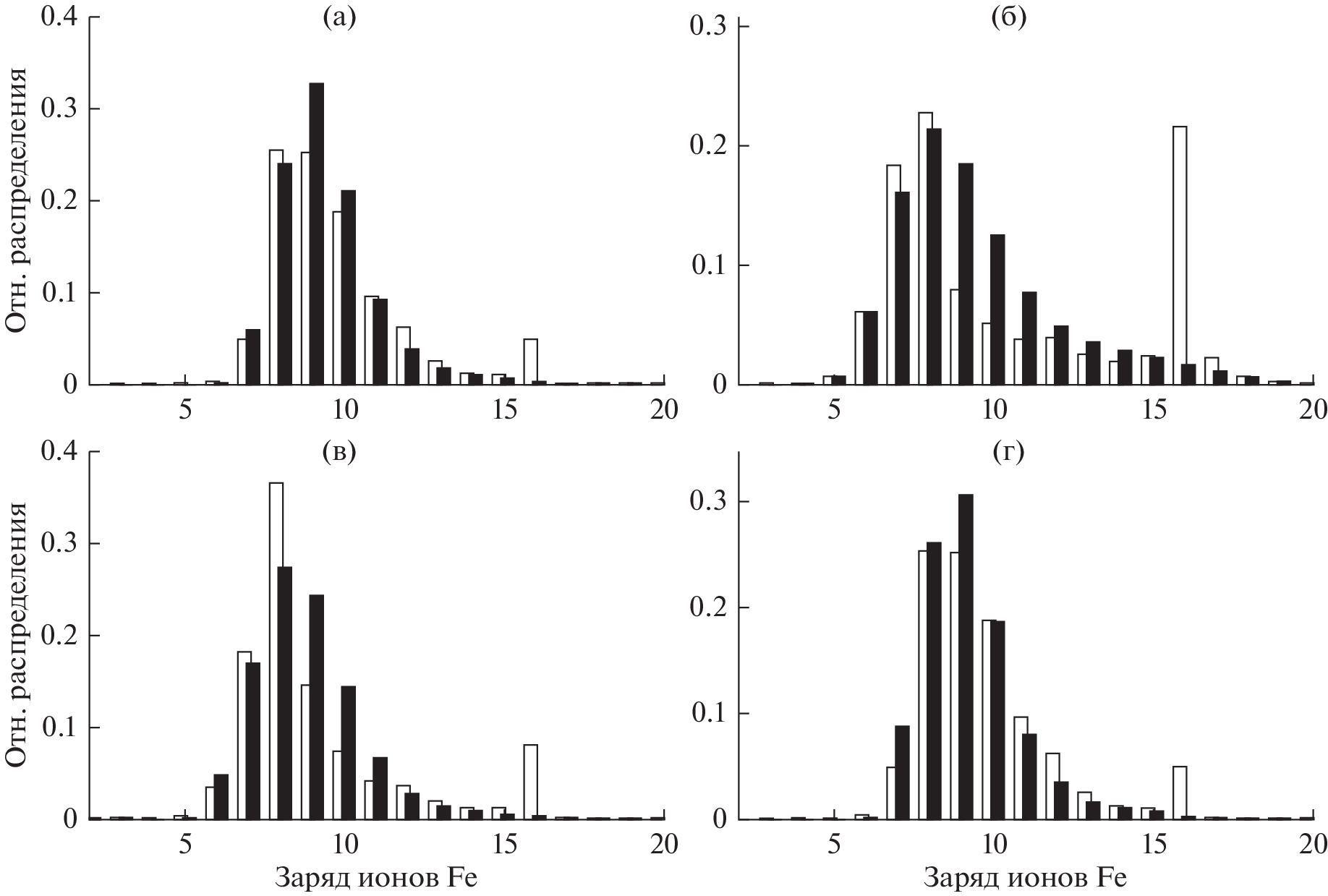 Analysis of the distributions of Fe ions over the stages of ionization in solar-wind (SW) plasma provides valuable information on the formation of SW streams and plasma heating processes, as well as for identifying SW sources on the Sun. When passing SW plasma through the corona, its ion composition evolves and finally “freezes” at distances of the order of several solar radii from the solar surface, remaining further practically unchanged in the heliosphere. This makes it possible to obtain information about the physical conditions in its source and the solar corona from the SW charge state. Average charge QFe, which is usually used to characterize the distributions of Fe ions, does not take into account all the features of the evolution of the ion composition, which does not allow one to extract more detailed information about the state of SW plasma. In this study, to describe the charge state of Fe ions, three parameters q4, q8, and q12 are introduced, which characterize the relative fractions of ions with charges Z = 0–7, 8–11, and 12–20, respectively, and conditionally correspond to “cold,” “medium,” and “hot” SW plasma components. According to the measurements of the Fe ion composition in 2010 on the STEREO-A spacecraft, the characteristic values of these parameters for different types of SW streams are given. The problem of modeling ion distributions in SW plasma based on diagnostic data on the parameters of coronal sources is considered. Using the example of the event associated with coronal-mass ejection on August 18, 2010, it is shown that the parameters of the charge state of Fe ions calculated from the model distributions are in good agreement within errors with the measurement data.