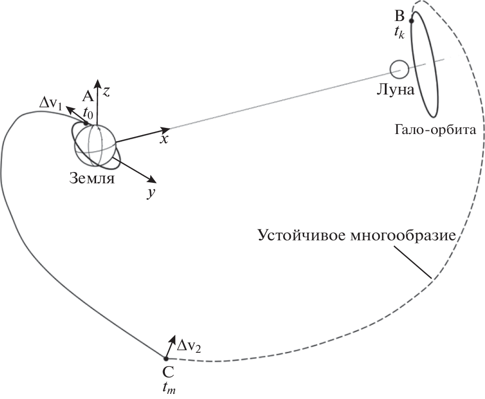 21. Petukhov V.G., Ivanyukhin A.V. Low-energy trajectories to the Earth–Moon libration points and to halo-orbits // IAA/AAS SciTech Forum 2019 on Space Flight Mechanics and Space Structures and Materials. Moscow. V. 174: Advances in the Astronautical Sciences Series. 2021. P. 81–94.