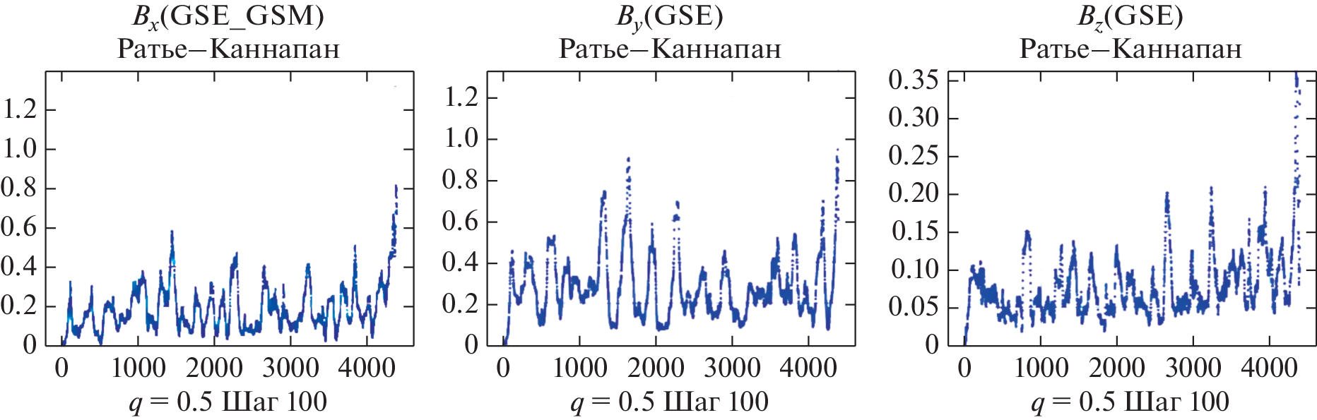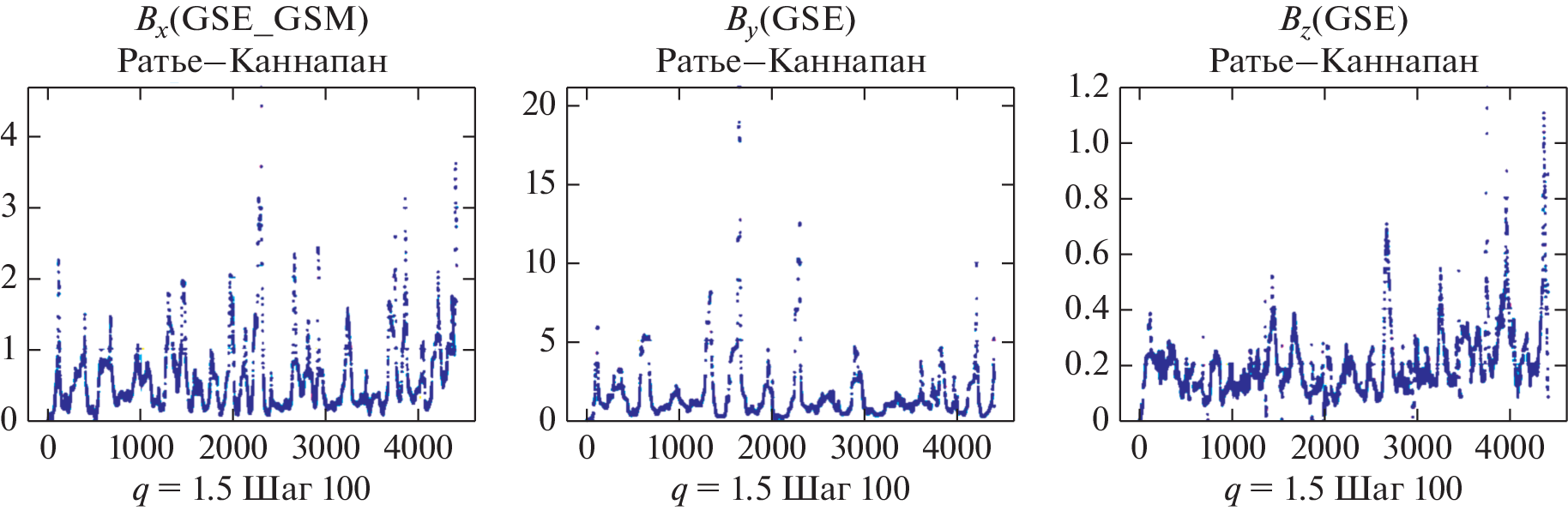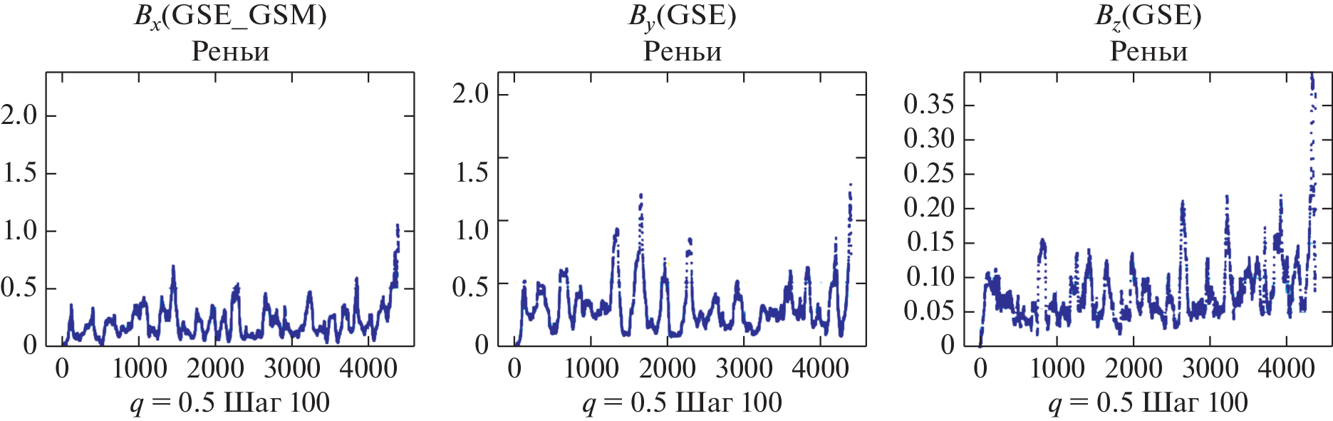 Обсуждаются результаты информационного анализа временных рядов спутникового мониторинга состояния межпланетного магнитного поля, предоставляемые базой данных Центра космических полетов Годдарда (англ. NASA Goddard Space Flight Center). В арсенале методов анализа основное внимание отводится контролю неэкстенсивных свойств при масштабировании временных выборок, создаваемых на основе временных рядов 2001–2022 гг. Демонстрируется перестройка модальности функции распределения вероятности для компонент межпланетного магнитного поля в рассматриваемом ансамбле реализаций. Представлены результаты реконструкции кинетики энтропийных мер Шеннона–Больцмана–Гиббса, Тсаллиса и Реньи. В неэкстенсивном приближении анализируется влияние q-деформации фазового пространства на стохастические режимы исследуемой системы. В работе впервые совместно исследуются кинетика информационного расхождения и кинетика энтропийных мер ансамбля реализаций значений межпланетного магнитного поля. Указывается необходимость согласования q-параметров деформации фазового пространства, опорной и контролируемой подсистем, в том числе, при использовании асимптотических приближений в методиках прогноза с применением нейросетевых алгоритмов и алгоритмов глубокого обучения.