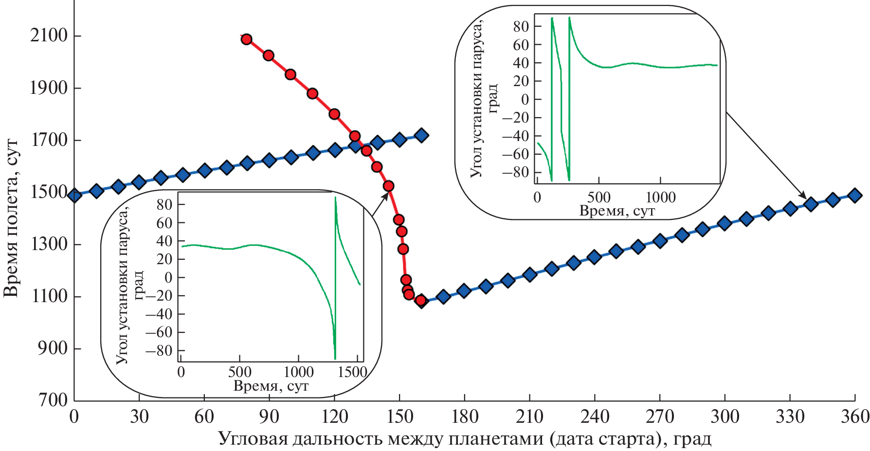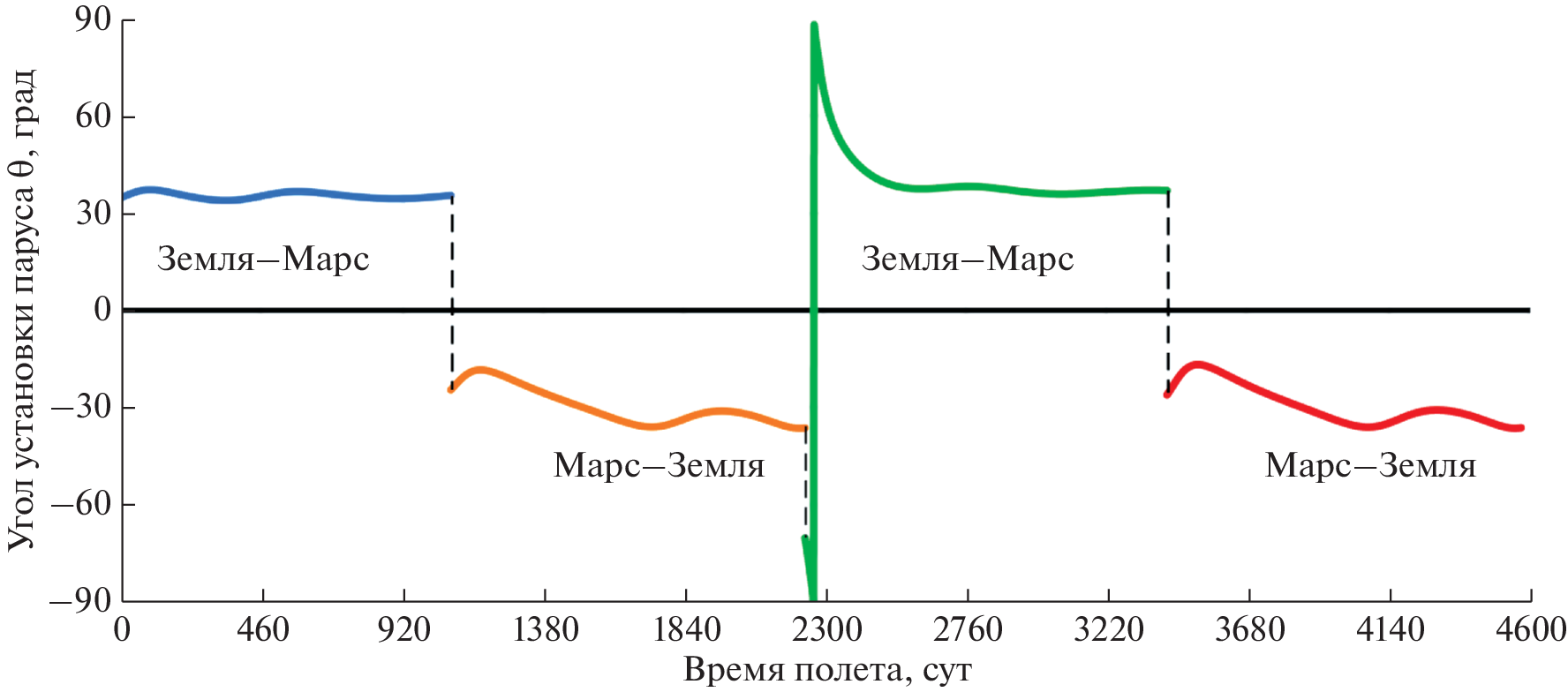 - Vergaaij M., Heiligers J. Time-optimal solar sail heteroclinic-like connections for an Earth-Mars cycler // Acta Astronautica. 2018. V. 152. P. 474–485.