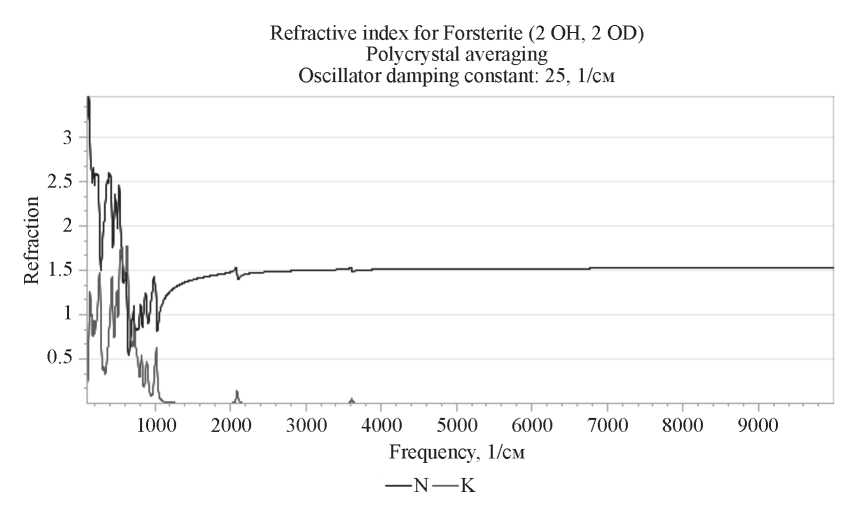 Вычисленный показатель преломления, соответствующий используемой 3D атомистической структуре форстерита с абсорбированными изотопологами воды ([-OH]–1 и [-OD]-1), показан на рис. 10.