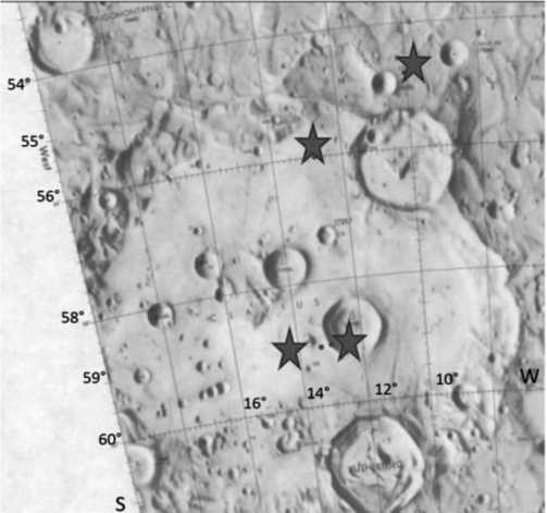 Рис. 13. Точки удаленных измерений SOFIA в лунном кратере Клавий (59° южной широты).