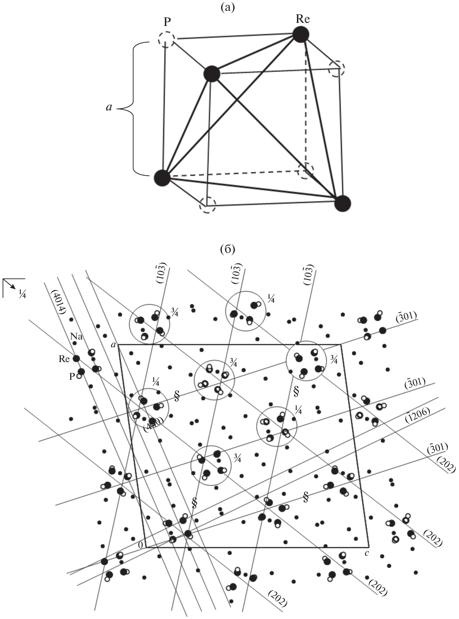 Проведен кристаллографический анализ структур – моноклинной Nа8[{Re4(PO)4}(CN)12]⋅18H2O⋅ ⋅CH3OH (I) и ромбической [(C6H5)4P]4 [Ta6I12(CN6)] (II), в которых кластеры тяжелых атомов значительно разрежены в пространстве так, что порядок их взаимного расположения нельзя объяснить только химическим взаимодействием. В структуре I кристаллографические плоскости с высокой атомной плотностью (“скелетные” плоскости) находятся в областях с dhkl = 10–5.5 Å и dhkl < 3 Å. В первой области фактически выделены плоскости, в которых сконцентрированы атомные группировки [Re4(PO)4], играющие роль единых массивных объектов, вторая – область, где упорядочение реализовано на уровне отдельных атомов. Кристаллографический анализ показал, что основу структуры определяют позиции тяжелых катионов Re. Поразительно, что в этой структуре в элементарной ячейке находятся 1152 подъячейки и только 32 атома Re, т.е. только 1/144 часть обеспечивает основу стабильности структуры. В структуре II также отсутствуют “скелетные” плоскости в интервале dhkl от ∼7 до ∼4 Å, и плоскости в области больших dhkl характеризуют упорядочение кластеров, а в области малых dhkl – упорядочение отдельных атомов. Геометрия и локальная симметрия кластерной группировки – Та6-октаэдра – диктуют основу трансляционной симметрии, единую подрешетку узлов, большая часть которых оказывается без этих атомов. Рассмотренные структуры демонстрируют ведущую роль тяжелых атомов в образовании трансляционной симметрии – принципиального отличия кристаллического состояния от других конденсированных состояний. Образующаяся структура сохраняет частично локальную симметрию зародышей (темплатов) атомных групп, связанных прочными химическими взаимодействиями, в том числе тяжелых атомов с легкими. Процесс образования из хаотически ориентированных и случайно расположенных темплатов кристаллической структуры – когерентная сборка – реализуется по законам динамики упругих сред, где важны не столько химические характеристики атомов, сколько их массы.