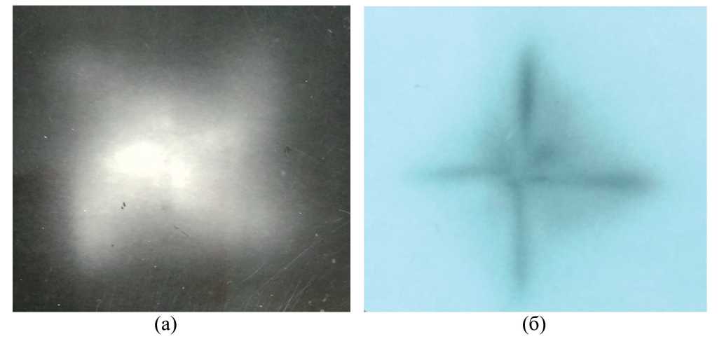 Рис. 2. Фигуры астеризма на гранях {001} кристаллов KCl (а) и NaCl (б).