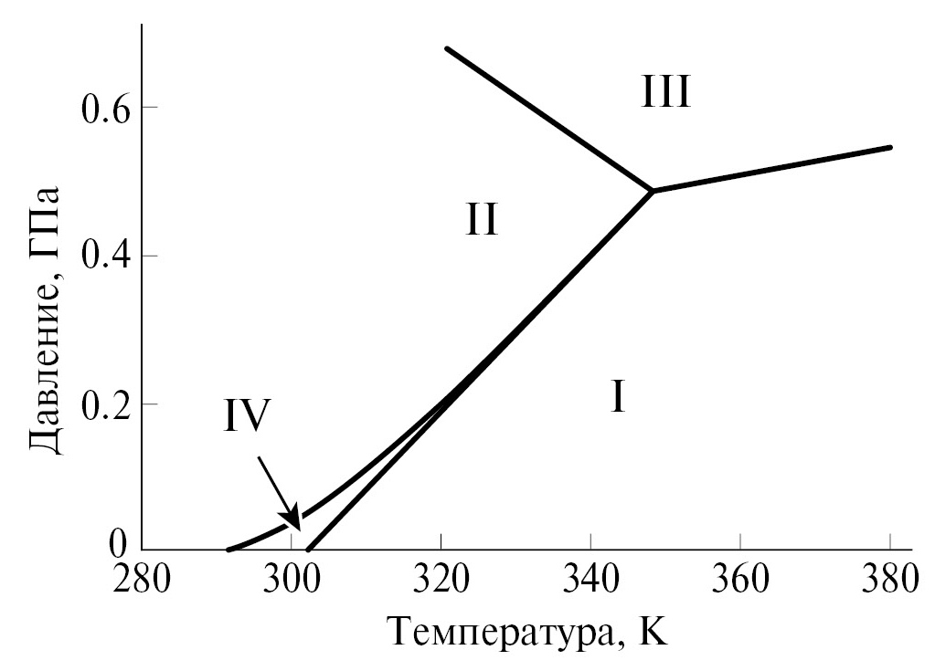 Рис. 1. Фазовая диаграмма ПТФЭ [2].