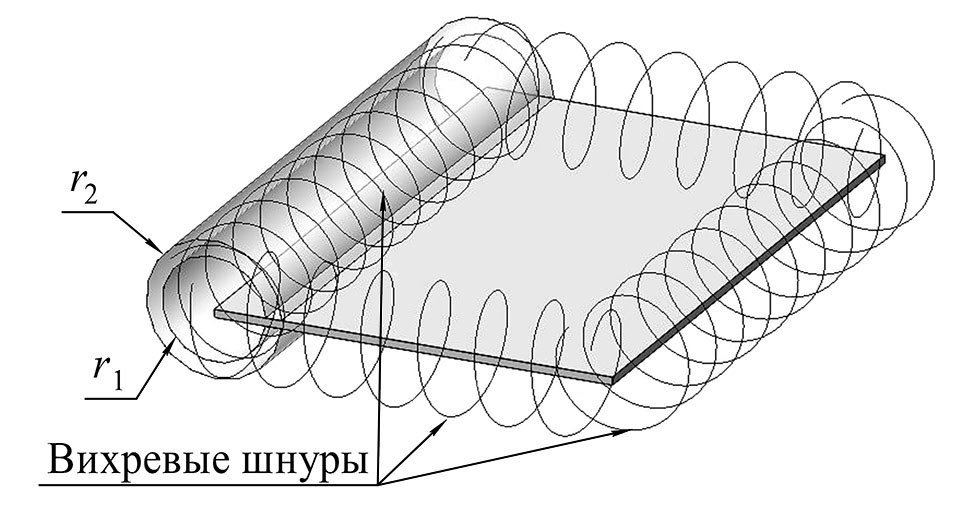 Рис. 3. Вихревые шнуры, возникающие в результате обтекания пластины (кристалла) жидкостью.