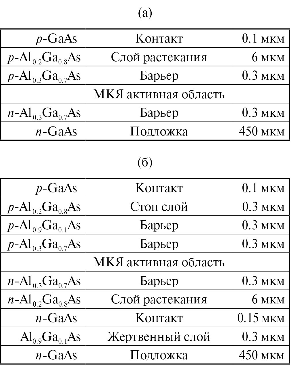 Таблица 1. Экспериментальные гетероструктуры МКЯ активной области