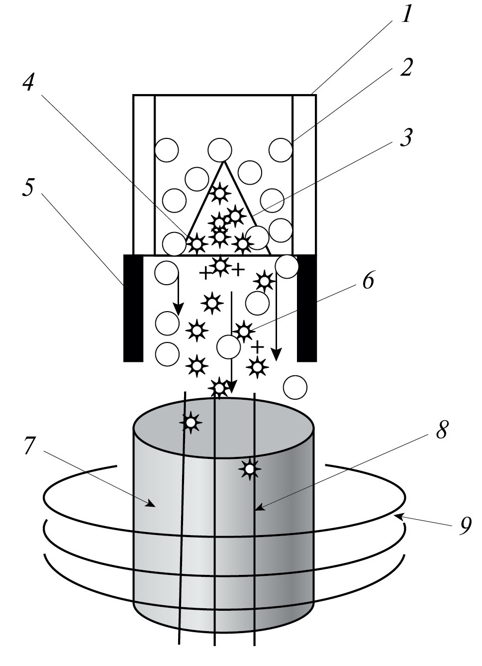 Отметим, что создание теории эффекта сверхглубокого проникания важно не только для совершенствования процесса легирования материалов, но и для поиска путей нейтрализации этого эффекта. Дело в том, что космические аппараты постоянно подвергаются действию ударов высокоскоростных микроразмерных частиц, которые, проникая сквозь металлическую оболочку аппаратов, выводят из строя электронные приборы [3, 35, 36]. Многослойные металлические экраны не могут защитить электронику. В [37] проводились исследования действия потоков высокоскоростных частиц на микросхемы, помещенные в герметичный алюминиевый контейнер с толщиной стенки 200 мм. Контейнер подвергался действию ударов сгустков пылевых частиц, летящих со скоростью 300–3000 м/с. Было обнаружено, что при однократном действии потока частиц внутри контейнера повреждалось 10% микросхем, при трехкратном воздействии повреждались 33%, а при пятикратном – 85%. При этом герметичность контейнера не нарушалась. Если гипотеза, что внутрь космического аппарата проникают частицы с положительным зарядом, верна, можно попытаться затормозить их движение в оболочке, приложив к ней импульс электрического поля.