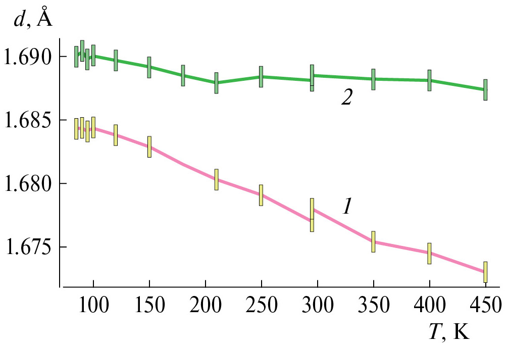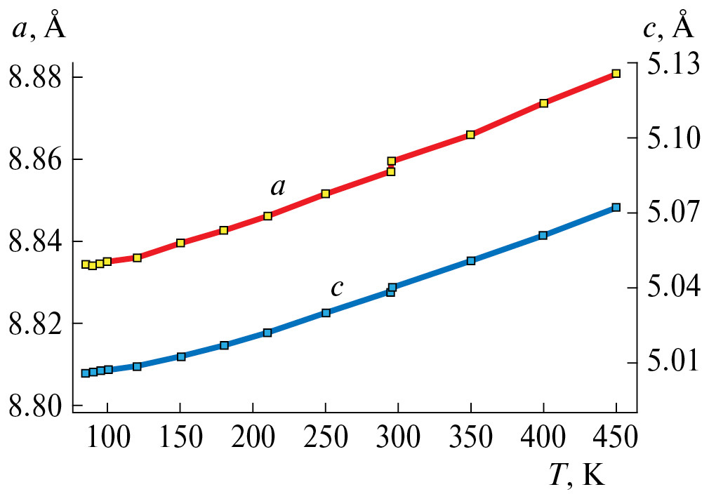 Кроме того, полезно изучить температурную зависимость параметров кристалла Na2SiF6. Дело в том, что существуют многочисленные исследования [15–17], где выбор пр. гр. Р321 подвергается сомнению. По-видимому, такая неоднозначность связана с существованием фазового перехода, который может происходить при смене химического состава кристаллов или при изменении температуры и давления.
