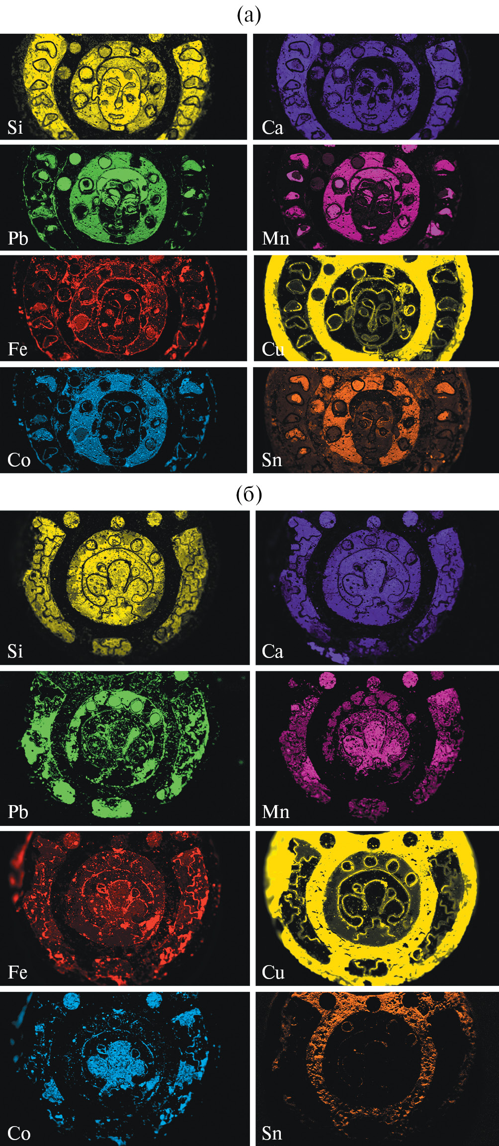 Исследования элементного состава эмалей проводили с использованием научного оборудования ЦКП “Исследовательский химико-аналитический центр НИЦ “Курчатовский институт”.