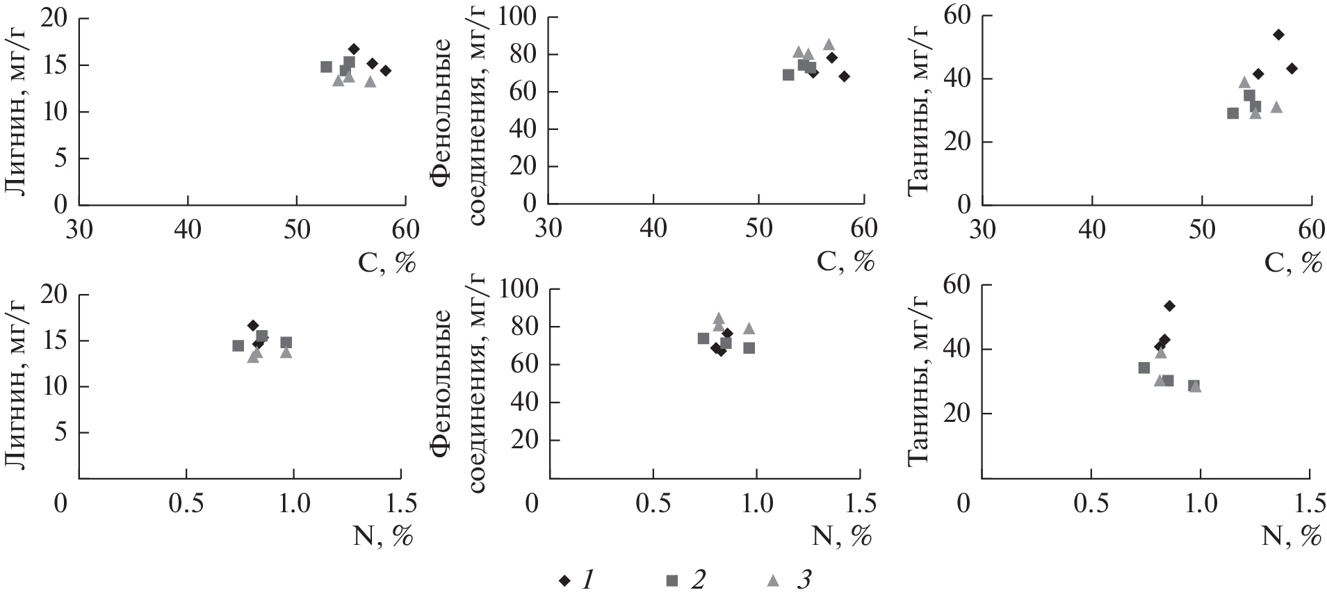 - Osono T., Takeda H. Accumulation and release of nitrogen and phosphorus in relation to lignin decomposition in leaf litter of 14 tree species // Ecological Research. 2004. V. 19. № 6. P. 593–602.