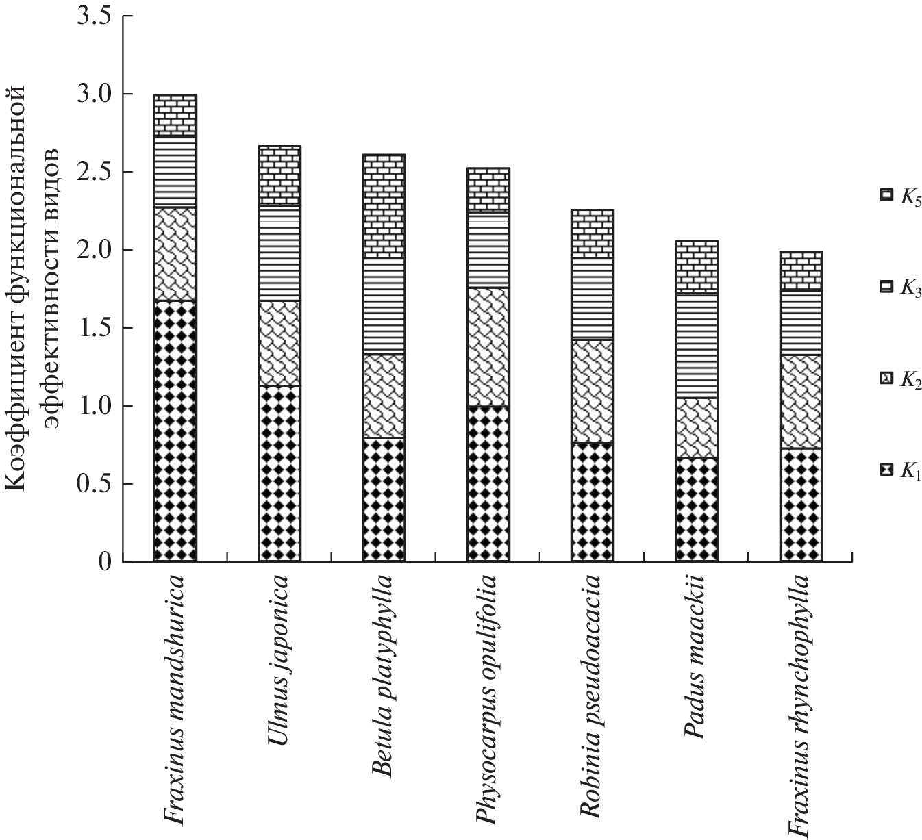 В статье обсуждаются результаты комплексного анализа экологического состояния и средостабилизирующих функций видового состава арборифлоры в структуре городского озеленения. В основу работы положен большой фактический материал, полученный в ходе многолетнего мониторинга зеленых насаждений г. Владивостока. Разработано методическое обеспечение качественно-количественной оценки видов с использованием методов прикладной квалиметрии. В качестве единицы оценки предложен интегральный показатель – коэффициент функциональной эффективности вида (КФЭВ) в озеленении. Он представляет собой относительно-количественный показатель качества, определяемый по совокупности ряда эколого-биологических и санитарно-гигиенических свойств растений: распространенности в озеленении, жизненного статуса, способности к аккумуляции приоритетных металлов-загрязнителей в городской среде, их концентрации относительно локального экологического фона, интенсивности накопления металлов из почвы. На основе предложенного коэффициента выполнен сравнительный анализ функциональной эффективности 80 видов деревьев и кустарников, формирующих городские насаждения Владивостока. В сравниваемой выборке растений КФЭВ снижается от 3.70 у боярышника перистонадрезанного (Crataegus pinnatifida) до 1.13 у яблони маньчжурской (Malus mandshurica). Эти показатели соответствуют 74 и 23% принятого стандарта качества (СК) видов. Выделены группы видов разной функциональной значимости в городском озеленении. Наибольшую эффективность в создании комфортных для проживания горожан условий среды показали виды широкого распространения в зеленых насаждениях: ясень маньчжурский (Fraxinus mandshurica), вяз японский (Ulmus japonica), берёза плосколистная (Betula platyphylla), пузыреплодник калинолистный (Physocarpus opulifolia) и др. Для них характерно как максимальное участие в формировании структуры городского озеленения, так и высокая способность к поглощению основных металлов-загрязнителей городской среды. КФЭВ этих видов находится в пределах 3.26–2.61, что соответствует 65–52% СК. В заключении даны предложения по рациональному использованию видов в формировании комфортной городской среды и внедрению полученных результатов в практику управления городским зеленым фондом.