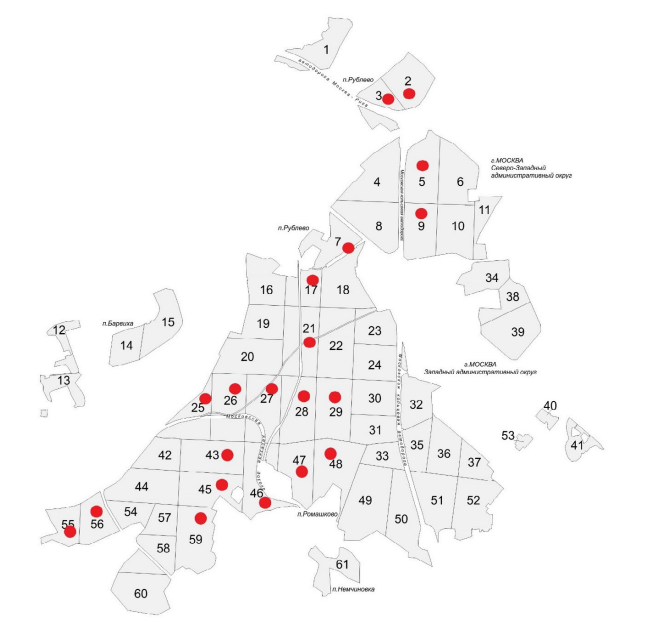 Рис. 1. Карта-схема пунктов сбора лихенологических материалов в Серебряноборском лесничестве.