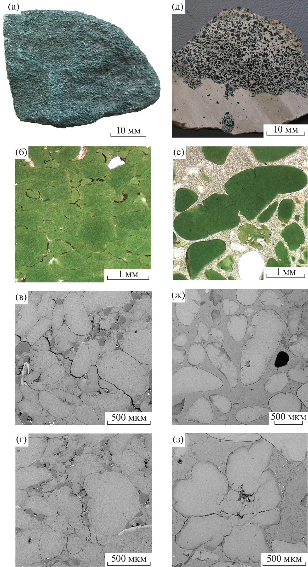 The mineralogical, structural and crystal-chemical features of seven samples of globular phyllosilicates of the glauconite-illite series (GPS) from the Lower Cambrian of Northern Estonia and Western Lithuania, from the Middle Cambrian of Western Latvia, and also from the Lower Ordovician of Northern Estonia and Western Latvia are considered for the first time. The Al index GPS (КAl = VIAl/ [VIFe3+ + VIAl]) varies from 0.27 to 0.59, which allows us to attribute them to the glauconite-illite series, in which GPS are represented mainly by glauconites (the Al index is КAl = 0.27–0.46) and one sample of Al-glauconite (КAl = 0.59). The content of K2O in minerals is from 7.12 to 7.90%. For the first time, the content of expandable layers (4–13%), their types (smectite, vermiculite) and the character of their alternation (R = 0, R = 2) were determined in the studied samples by simulation of experimental X-ray diffraction patterns from oriented preparations. Simulation of X-ray diffraction patterns obtained from nonoriented preparations made it possible to reveal the degree of three-dimensional order, and mean values of the unit-cell parameter b (9.056–9.094 Å) as well as the features of the distribution of their individual micaceous varieties and to establish the heterogeneity of the samples. Based on these data, the microheterogeneity of the Cambrian and Ordovician GSSs was established and compared with the heterogeneity in the previously studied Riphean GPS [Drits et al., 2013]. The obtained Rb-Sr и K-Ar ages for the Middle Cambrian and Lower Ordovician samples, as well as the earlier published dates for the Lower Cambrian samples, are “rejuvenated” compared to age limits accepted for the Cambrian and Lower Ordovician [Gradstein et al., 2020]. The dependence of the Cambrian and Lower Ordovician “rejuvenated” isotopic dates and the discovered GPS heterogeneity, as well as possible reasons for its occurrence, are discussed.