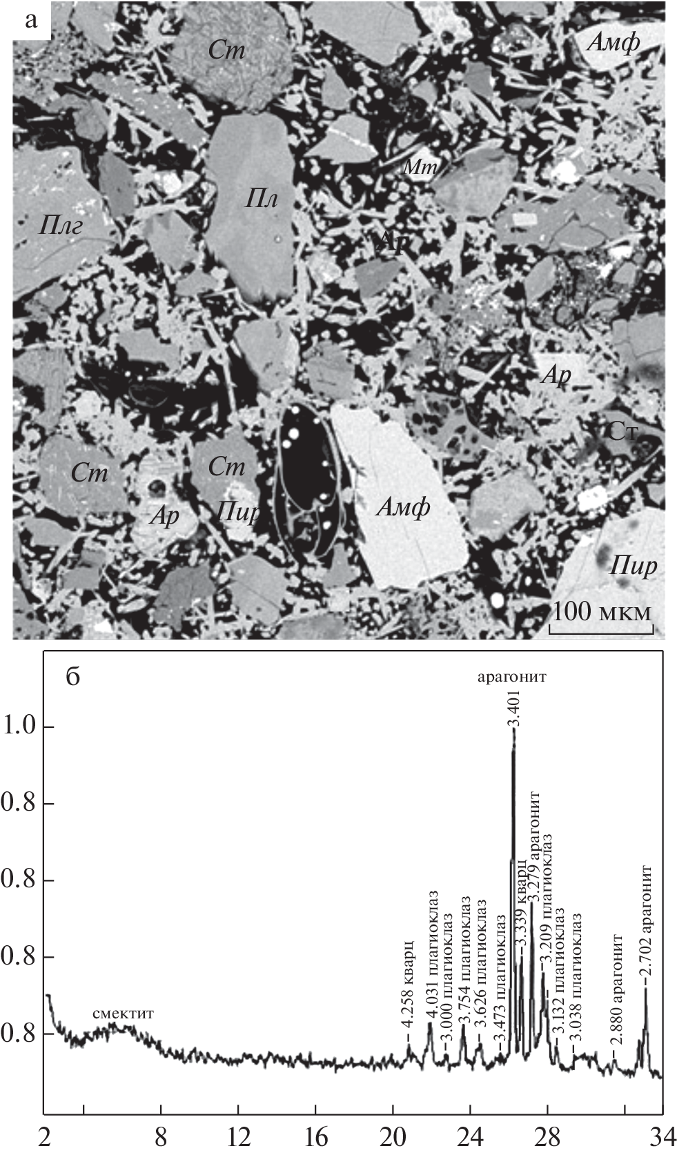 Carbonate nodules from the area of the Paramushir hydroacoustic anomalies are territorially confined to the zones of methane seeps, controlled, in turn, by deep tectonically weakened bottom areas. According to the structure, chemical and mineral composition, the screeds can be classified as volcanogenic-sedimentary rock, consisting of vitro-, litho-, crystalline clasts and buried microfauna, cemented with carbonate (aragonite) cement. The details and sequence of mineral formation of carbonate nodules are considered.