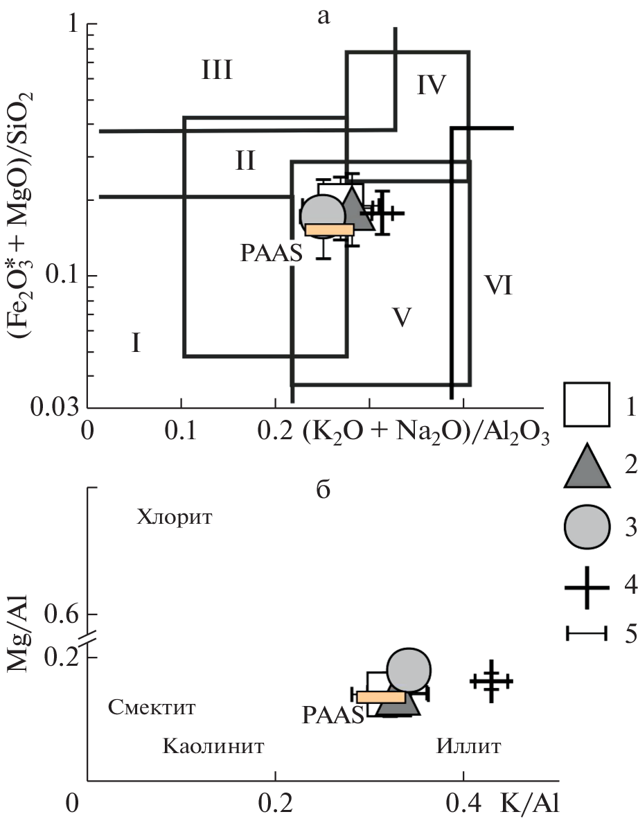 - Roser B.P., Korsch R.J. Provenance signatures of sandstone–mudstone suites determined using discriminant function analysis of major-element data // Chemical Geol. 1988. V. 67. P. 119–139.