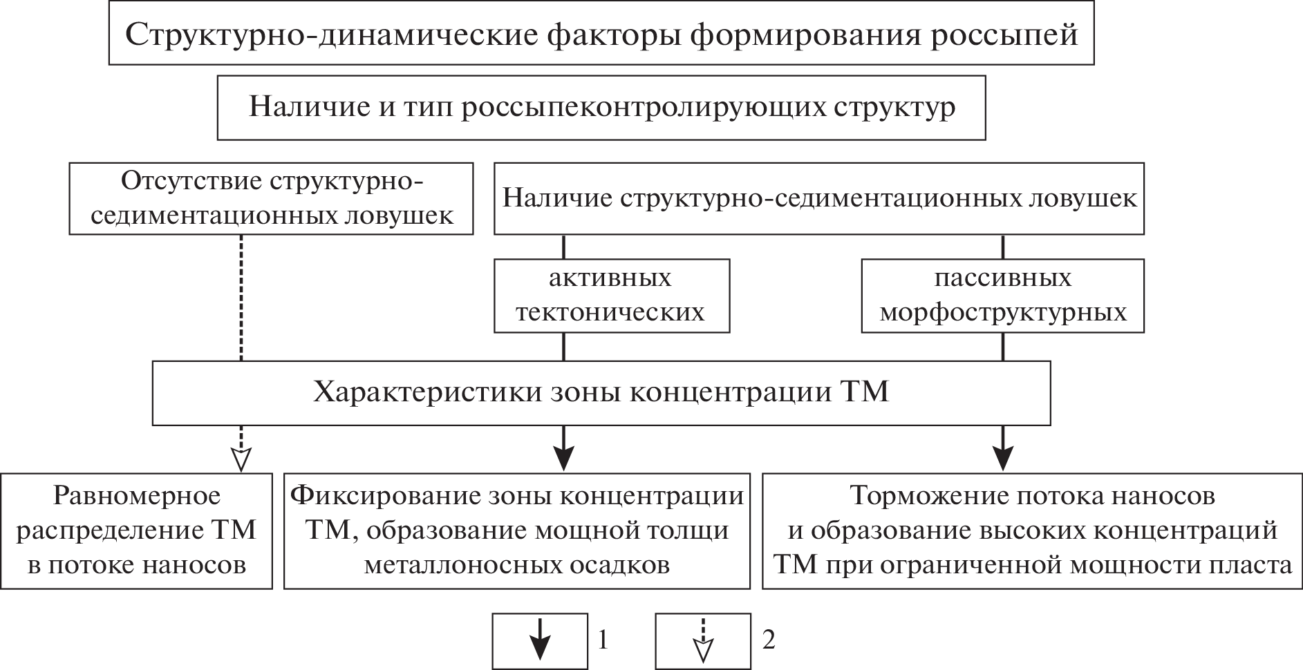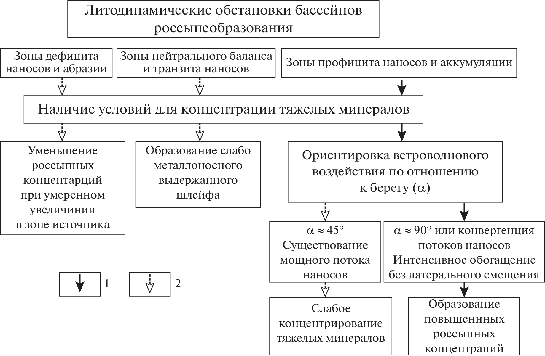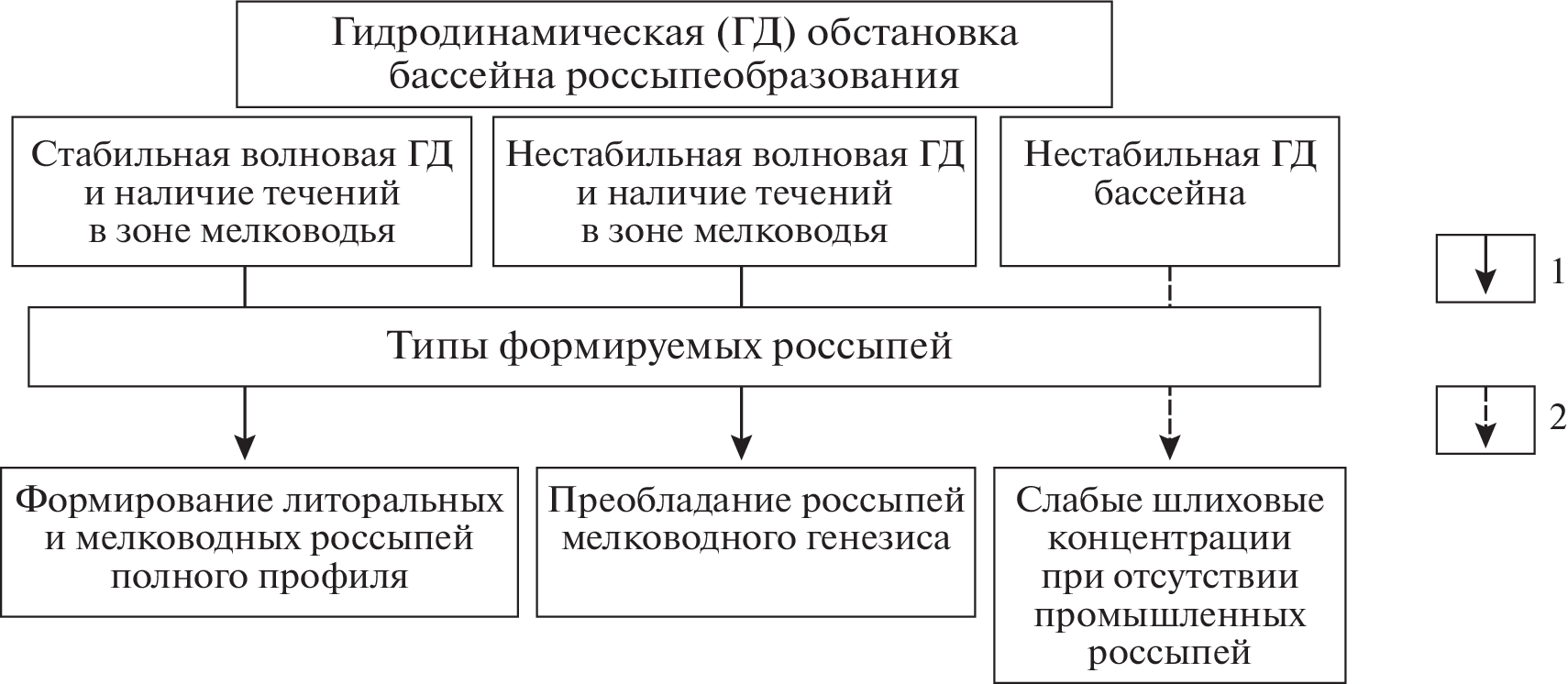 Local factors of formation of coastal-marine rare-metal-titanium placers were analyzed for creation of the search-oriented geological-dynamic model that allows predicting the prospects of rare-metal-titanium placer mineralization. The influence of the factors on the structure, composition, localization of placer concentrations within sedimentation basins, as well as the dynamic interaction of these factors during the formation of productive sediments was investigated. Based on the work of previous researchers who have studied in detail the issues of controlling the formation of these placers at the historical-geological and regional structural-tectonic level, a qualitative model of the formation of placer concentrations on local areas of the rank of districts, clasters, fields and specific placer bodies has been created, which can be the basis for creation of search-orientated model of the deposit and planning exploration and evaluation work. The following factors of the placer formation were studied: hydrodynamic – characterizing the types and mechanisms of placer concentrations (littoral and sublittoral) within the dynamically active coastal zone; lithodynamic – depending on the abrasion-accumulative regime of the coast and the parameters of the long-shore sediment flow; structural–dynamic – determining the possibility of the formation of economically significant productive deposits and their localization; and the factor of transgressive-regressive regime a basin that determines the structure of placer bodies and their transformation at the post-sedimentation stage. Large economically significant rare-metal-titanium placer deposits are formed only in conditions of joint realization of the positive potential of these factors. The developed qualitative model can serve as a basis for the process of digitalization of the forecasting of placer mineralization of this type.