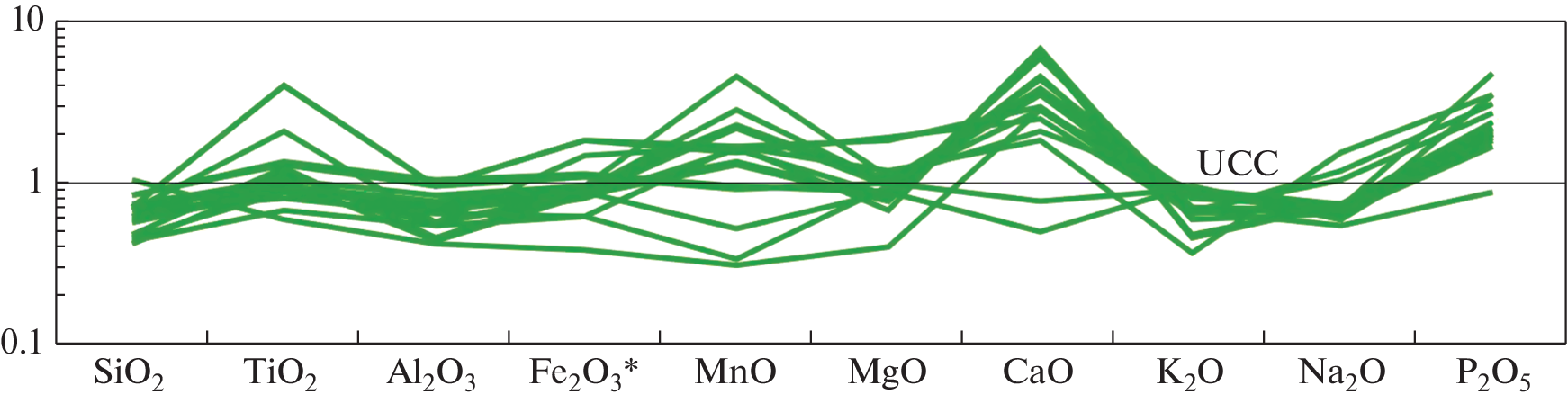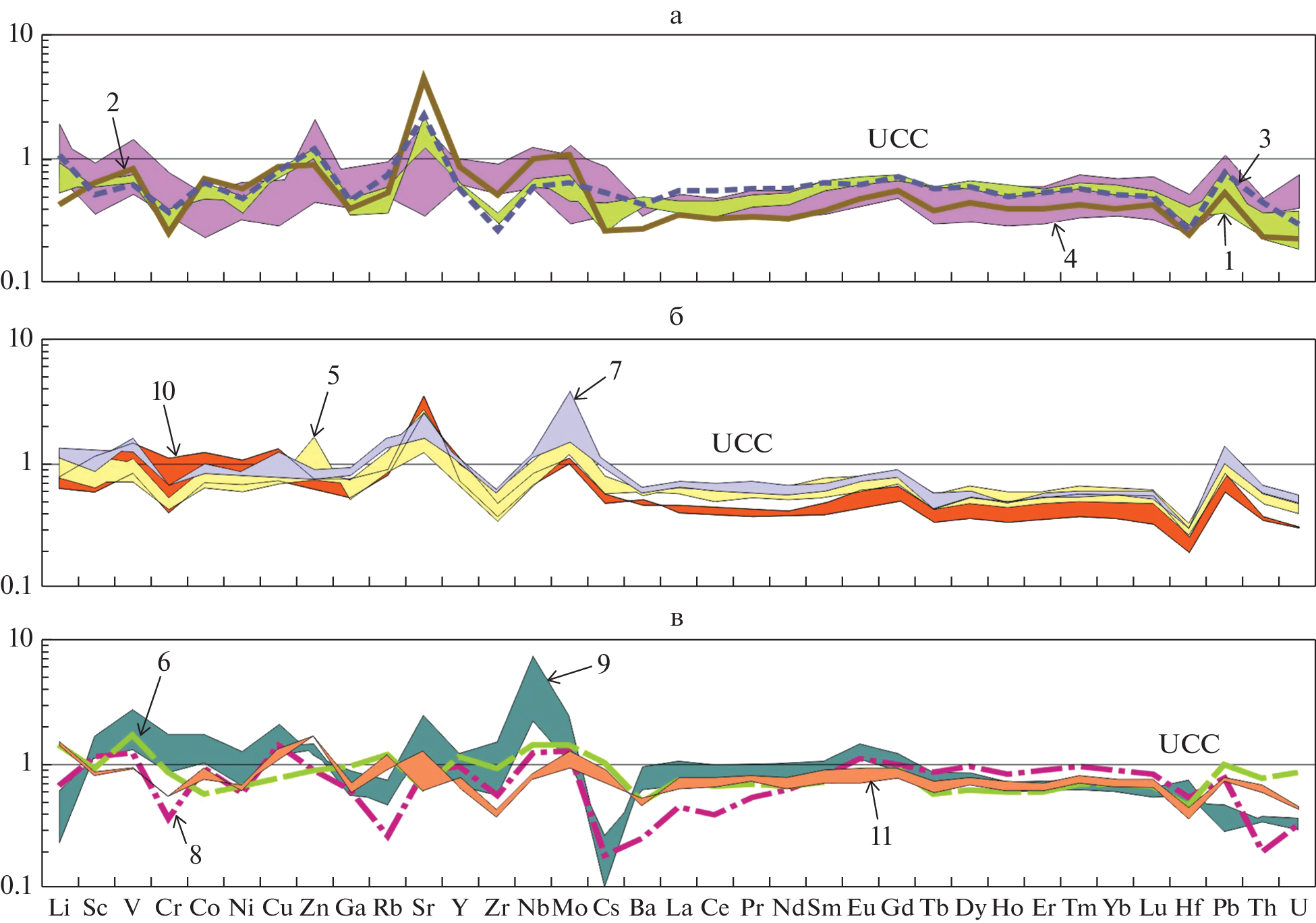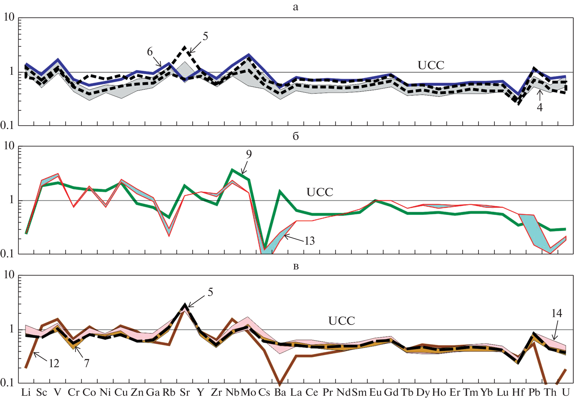 - Cullers R.L. The geochemistry of shales, siltstones, and sandstones of Pennsylvanian-Permian age, Colorado, USA: implications for provenance and metamorphic stu-dies // Lithos. 2000. V. 51. P. 181–203.