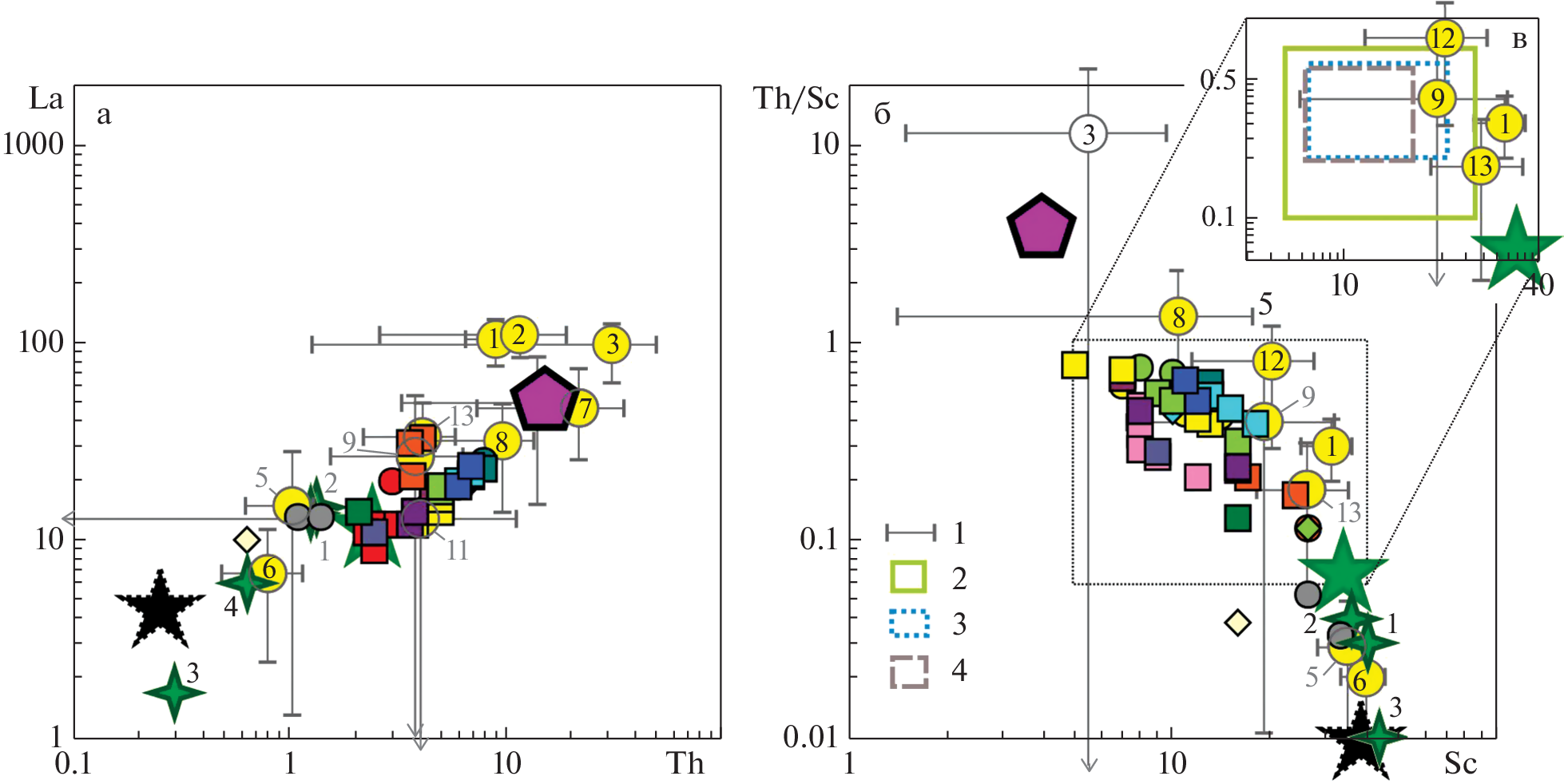 - Girty G.H., Hanson A.D., Knaack C., Johnson D. Provenance determined by REE, Th, Sc analyses of metasedimentary rocks, Boyden Cave Roof Pendant, central Sierra Nevada, California // J. Sed. Res. 1994. V. B64. P. 68–73.