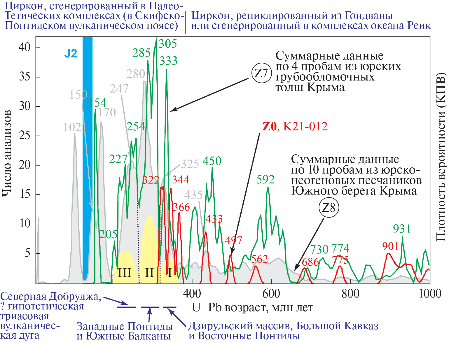 - Kuznetsov N. B., Belousova E. A., Griffin W. L. et al. Pre-Mesozoic Crimea as a continuation of the Dobrogea platform: Insights from detrital zircons in Upper Jurassic conglomerates, Mountainous Crimea // International Journal of Earth Sciences. 2019. V. 108. Iss.7. P. 2407– 2428. doi: 10.1007/s00531-019-01770-2