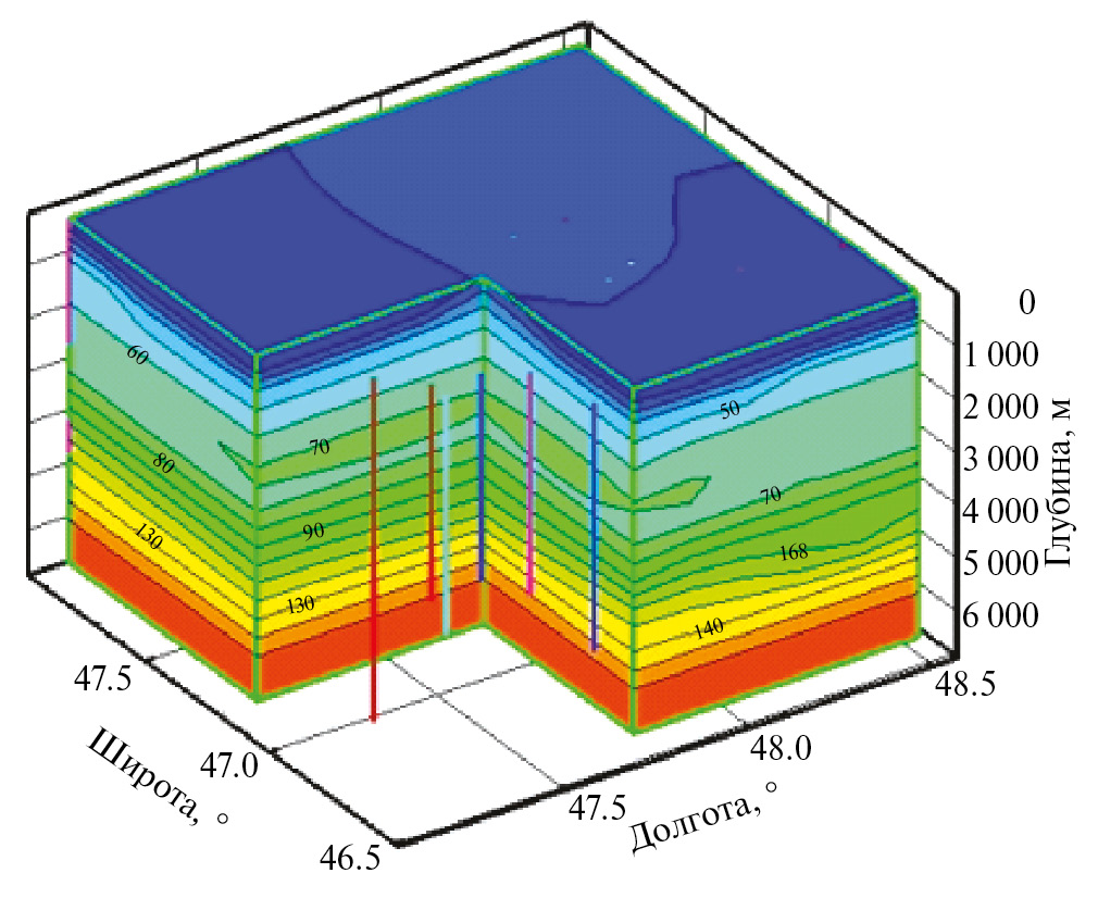 Рис. 9. 3D-температурная модель Астраханской НГП
