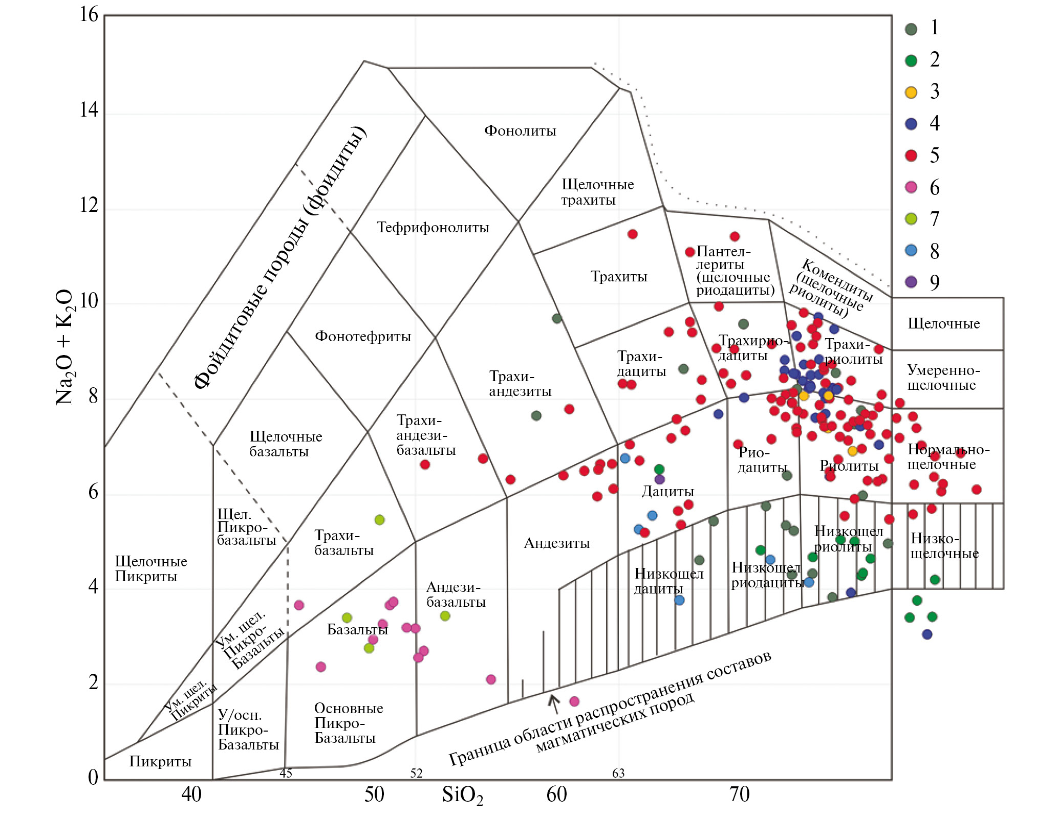 Текущие сведения о распространении в Западной Сибири вулканитов кислого состава носят весьма ограниченный характер. Согласно региональным стратиграфическим схемам 1991 и 2003 гг. для триаса Западной Сибири [Решения …, 1991, 2004] пермско-триасовые дациты и риолиты имеют крайне редкое и спорадическое распространение (упоминаются только в Викуловском и Сургутском структурно-фациальных районах), тогда как одновозрастные базальты развиты хоть и локально, но практически во всех районах плиты. Очевидно, что редкое упоминание кислых вулканитов является следствием их крайне слабой изученности в Западной Сибири: основные представления о возрасте и распространении этих пород получены в последние 20 лет [Бочкарев и др., 2003, 2009а, 2009б, 2010; Медведев и др., 2003; Медведев, 2004; Тугарева и др., 2017; Чирков и др., 2016; Шадрина, 2018]. При этом, в более поздних работах и на современных геологических картах все чаще фигурируют риолиты и дациты триасового возраста (например, [Государственная …, 2009; Денисов и др., 2011]).