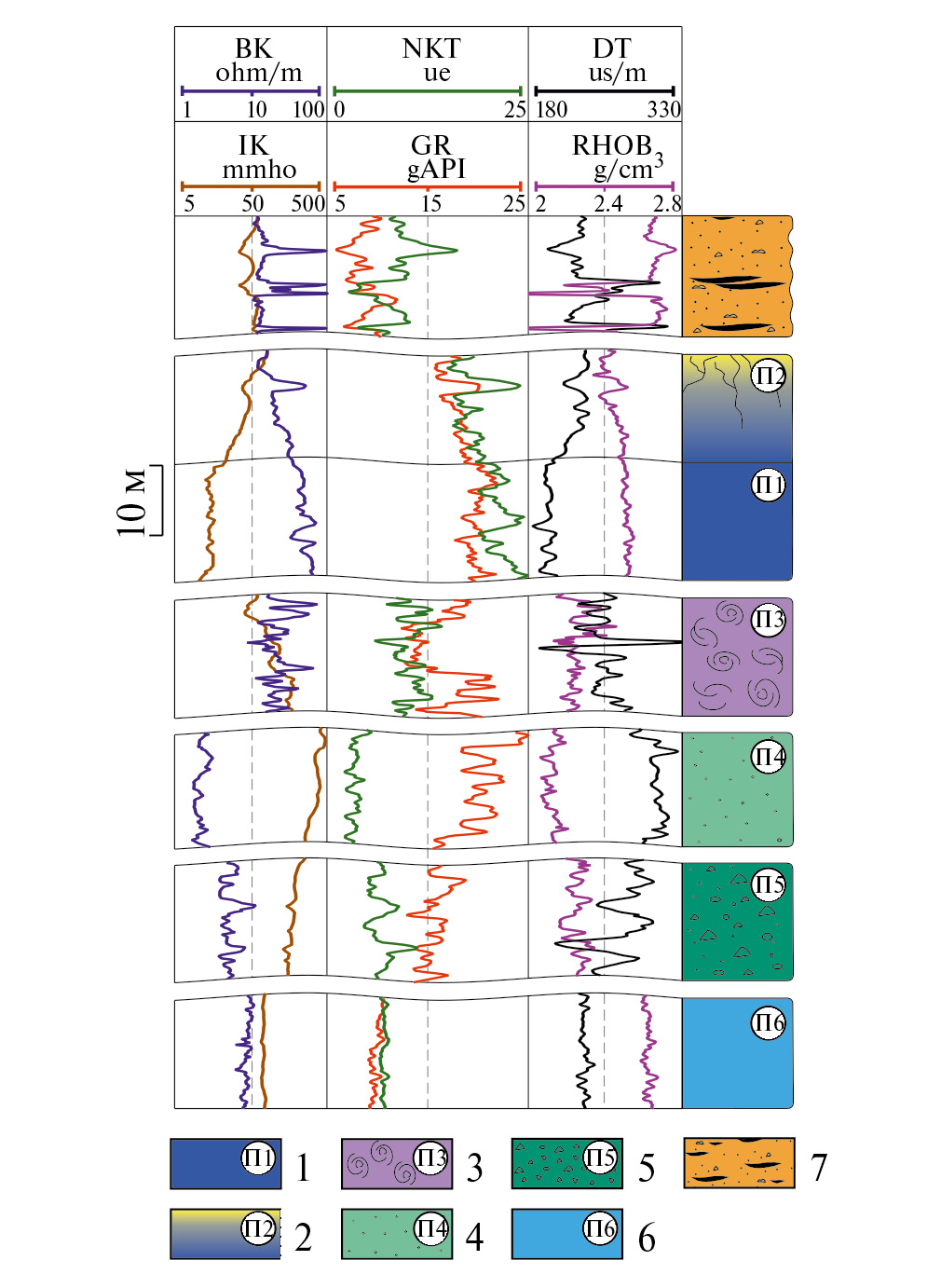 Авторы весьма признательны своим коллегам, внесшим свой значительный вклад при выполнении исследования: С. С. Гаврилову (ЗАО “МиМГО”) за ценнейшие советы и критические замечания, Р. А. Гарипову, И. М. Гусеву, Я. Б. Талдыкину (ЗАО “МиМГО”) за обсуждения результатов и помощь в оформлении материалов, М. Б. Аносовой, А. С. Красильникову, А. А. Майорову, А. О. Хотылеву (Геологический факультет МГУ им. М. В. Ломоносова) и И. В. Федюкину (ИФЗ РАН) за участие в описаниях керна и петрографических исследованиях, обсуждениях материалов, А. С. Новиковой (ГИН РАН) за тщательную пробоподготовку каменного материала, коллективу НАЦ РН им. В. И. Шпильмана в г. Ханты-Мансийск за содействие в организации и участие в керновых исследованиях, в особенности О. В. Латыповой, П. А. Стулову, И. Б. Корепанову, а также А. И. Хисамутдиновой (ООО “ЛУКОЙЛ-Инжиниринг”) за поддержку, рекомендации и советы.