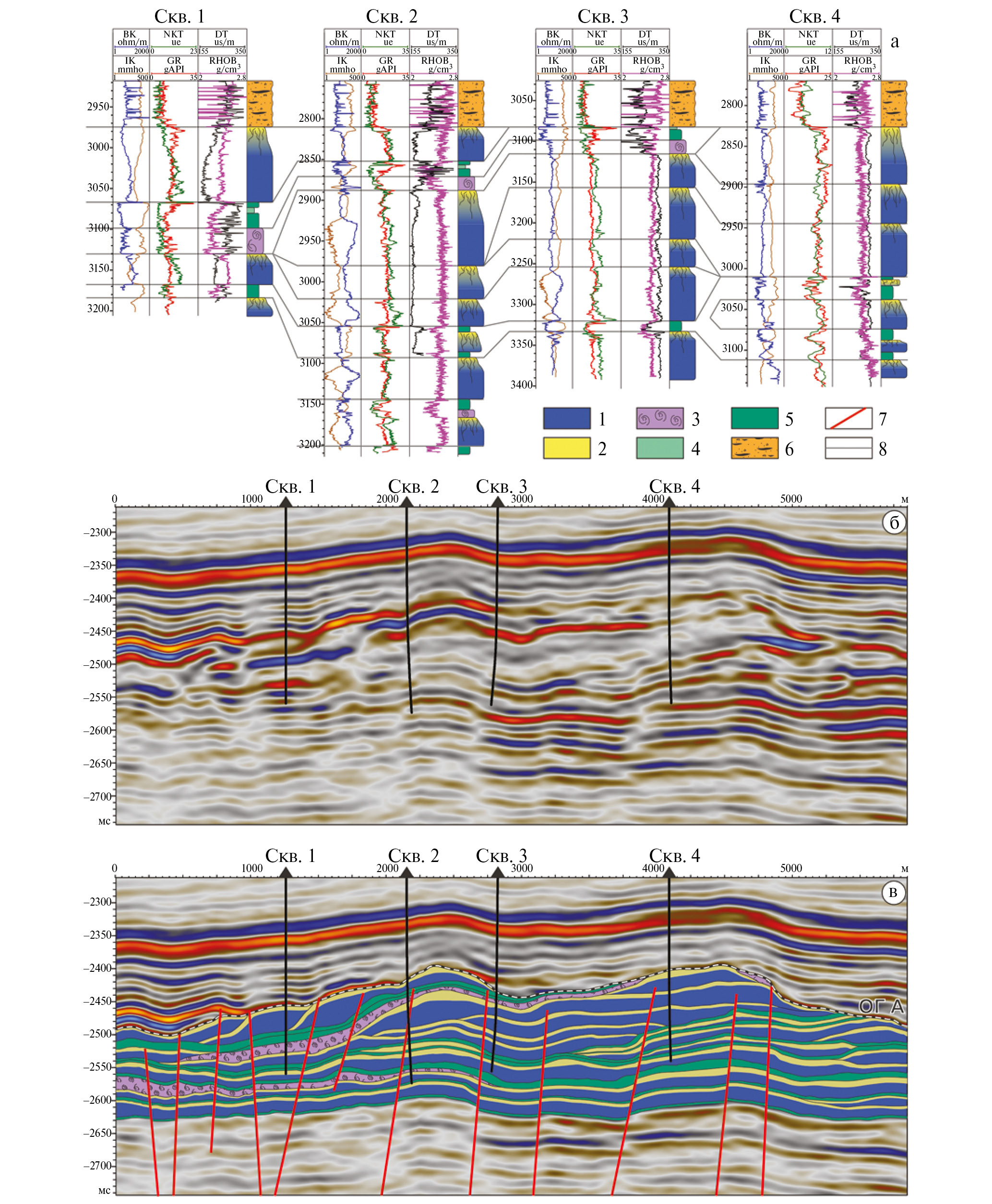 В статье приведены результаты комплексных исследований (состав, коллекторские свойства, геофизические параметры и возраст) измененных вулканитов кислого состава (риолиты, дациты), приуроченных к пермско-триасовому промежуточному структурному этажу Западно-Сибирской плиты. В результате вторичных изменений в этих вулканитах могут формироваться коллекторы нефти и газа. С учетом их глубины залегания (более 2 км), они доступны для изучения только по керну и геофизическим данным. По результатам исследований керна установлено 25 петрографических разностей кислых вулканитов. Совокупность таких признаков, как 1) структурно-текстурные особенности, 2) степень вторичных изменений и 3) выраженность на каротажных кривых позволила сгруппировать эти многочисленные петрографические разности в шесть ключевых петротипов. При этом выделенные петротипы заметно отличаются по коллекторским свойствам (пористость, проницаемость). Все изученные 443 образца вне зависимости от принадлежности к петротипу характеризуются близким геохимическим составом, а полученные определения возраста U-Pb методом по циркону (254 ± 2–248.2 ± 1.3 млн лет) указывают на приуроченность изученных кислых вулканитов к единому тектономагматическому этапу на рубеже перми и триаса. По сейсмическим данным выявлено, что в пределах Фроловской мегавпадины (центральная часть Западной Сибири) изученные вулканиты распространены в пределах грабенов. В частности, уточнены границы относительно крупной (шириной 70 км и протяженностью 200 км) грабенообразной Рогожниковско-Назымской структуры, а также установлено несколько других подобных, но более мелких структур. Комплексный анализ керновых, каротажных и сейсмических данных позволил определить морфологию и пространственное взаиморасположение вулканогенных тел, сложенных различными петротипами кислых вулканитов, что формирует основу для прогноза интервалов и участков разреза с наилучшими фильтрационно-емкостными свойствами.