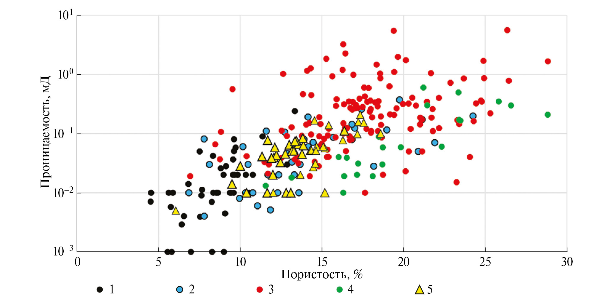 Нефтеносность кислых вулканитов изучалась практически только на Рогожниковском [Голубева, Криночкин, 2001; Кос и др., 2004] и Средне-Назымском месторождениях [Тугарева и др., 2017; Хромова и др., 2015], где притоки нефти достигают 190 куб. м в сутки. При этом остаются совершенно неясными тип ловушек и характер их строения, механизмы флюидонасыщения, природа флюидоупоров, что существенно затрудняет разведку и разработку месторождений.