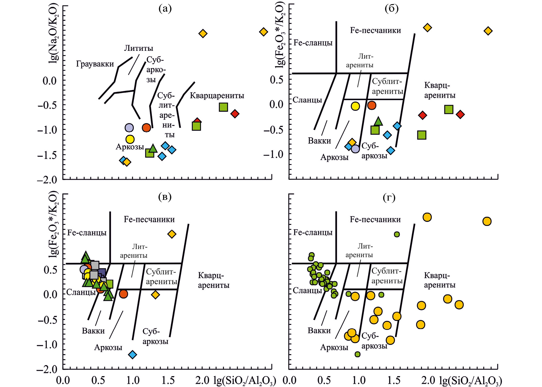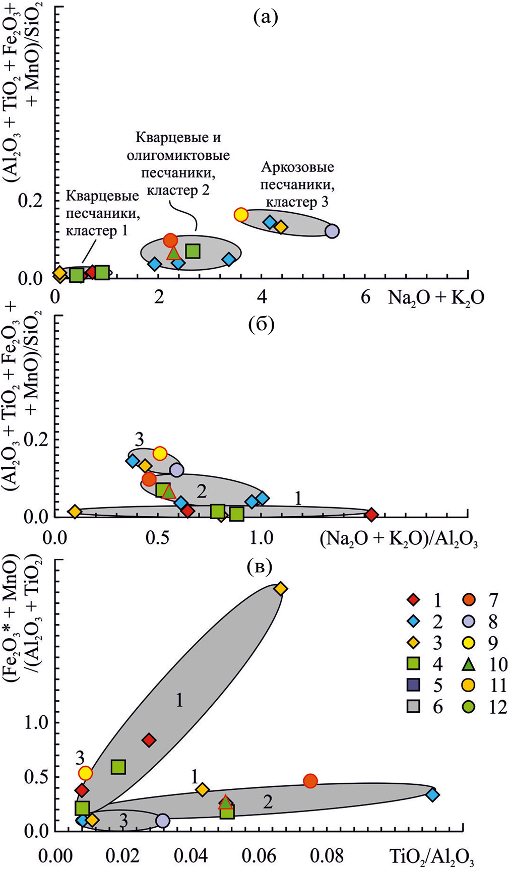Петрогенный характер материала, слагающего большинство исследованных нами образцов обломочных пород пилотной коллекции, позволяет считать, что выводы относительно основных факторов формирования исходных для них осадков, полученные на основе использования разнообразных приемов и подходов из практики литогеохимических исследований, будут достаточно корректными.