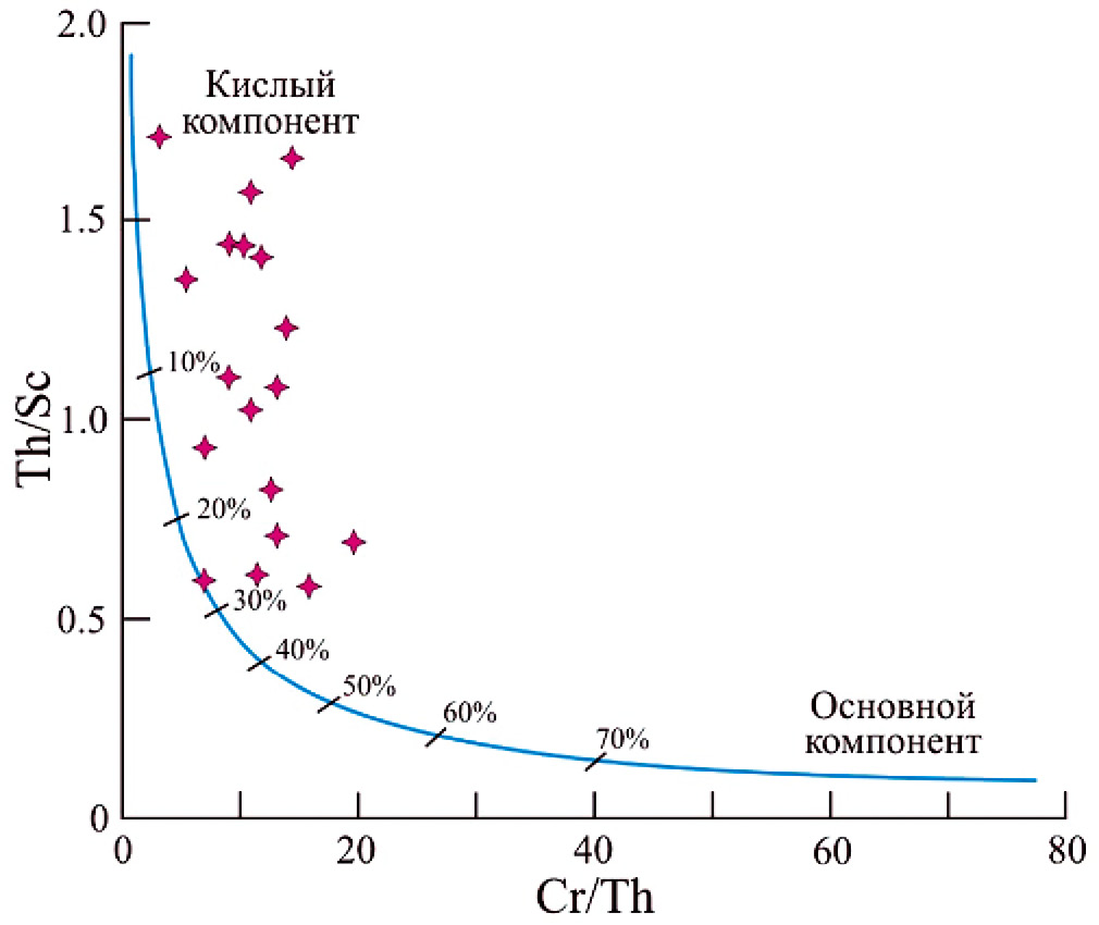Очевидно, что определенным тектоническим типам источников питания провинций соответствуют и определенные геодинамические обстановки формирования связанных с ними седиментационных бассейнов [Dickinson et al., 1983; Maynard et al., 1982; McLennan et al., 1993 и др.]. Они устанавливаются путем сравнения вещественного состава пород изученных объектов с составом древних и современных пород и осадков из бассейнов известных тектонических обстановок.