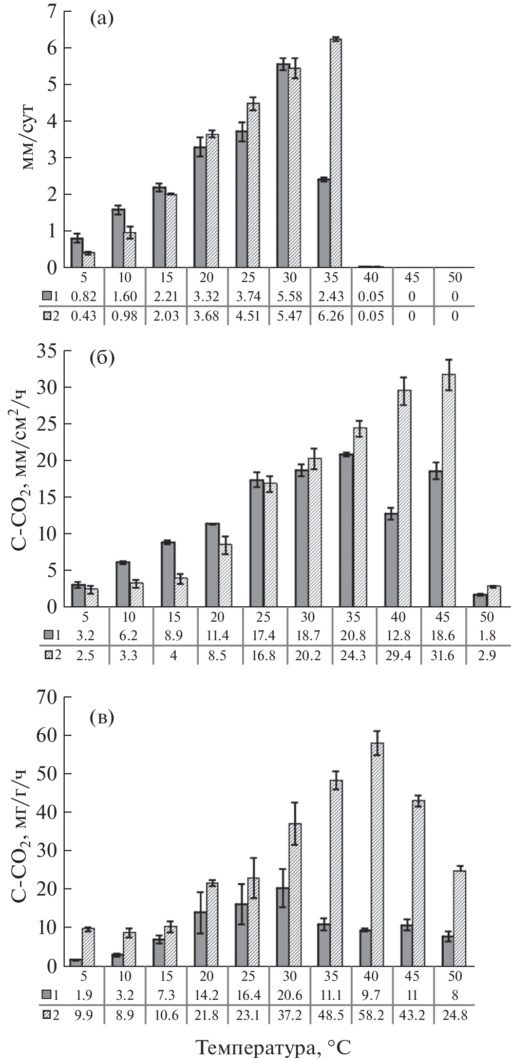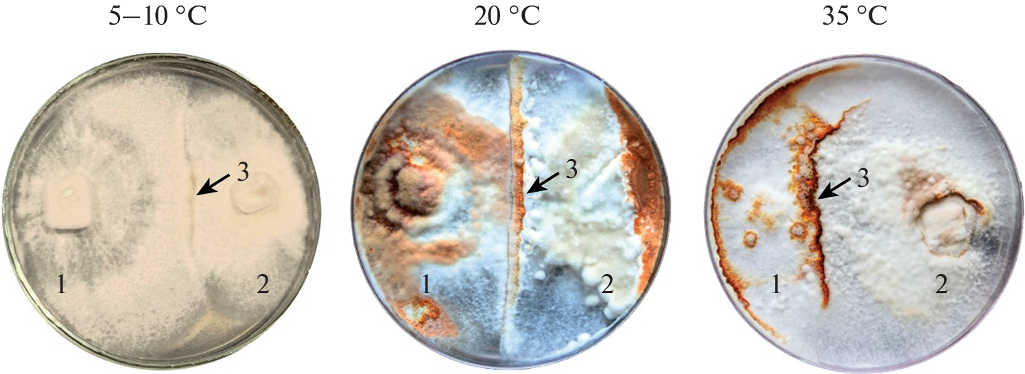The temperature dynamics of mycelium growth, СО2 gas exchange and competitiveness of Daedaleopsis confragosa and D. tricolor were analyzed. It has been shown that on agar (MEA) mycelium growth is limited to 5–35°C, and its maximum is observed at 30°C (D. confragosa) – 35°C (D. tricolor). The mycelium СО2 gas exchange at MEA is recorded in the range of 5–50°C, with a maximum for D. confragosa at 35°C and 45°C for D. tricolor. The temperature dynamics of CO2 gas exchange in wood destroyed by D. confragosa and D. tricolor does not fundamentally differ from that of dikaryotic mycelium on MEA: recorded in the same temperature range (5–50°C), the temperature maximum is higher in D. tricolor (40)°C than in D. confragosa (30°C). According to the temperature characteristics of mycelium growth and СО2 gas exchange D. confragosa and D. tricolor can be characterized as mesophilic fungi, but differ in pronounced ecological individuality in relation to low and high temperatures. D. confragosa is characterized by more intensive growth and СО2 gas exchange of mycelium at 5–10°C, and D. tricolor at 35–50°C, which determines the temperature dynamics of their competitiveness: higher in D. confragosa at low, and in D. tricolor – at high temperatures. This corresponds to their geographical distribution: the first one is found in all latitudinal parts of the forest zone, and the second one is absent in its northern part, but common in the southern. According to the geographical and ecological-physiological features, D. tricolor can apparently be considered as the southern subspecies of D. confragosa s.l.