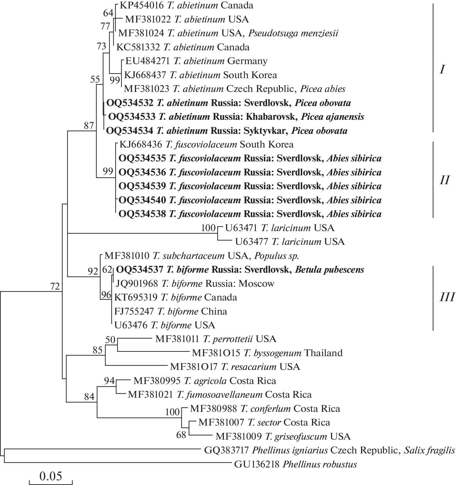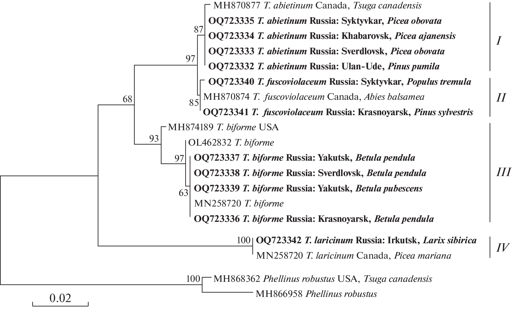- Seierstad K.S., Fossdal R., Miettinen O. et al. Contrasting genetic structuring in the closely related basidiomycetes Trichaptum abietinum and Trichaptum fuscoviolaceum (Hymenochaetales). Fungal Biol. V. 125 (4). 2021. P. 269–275. https://doi.org/10.1016/j.funbio.2020.11.001